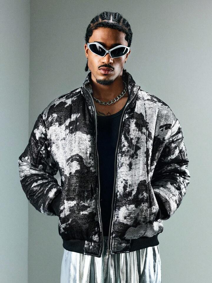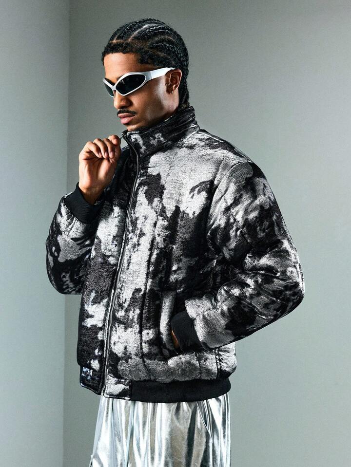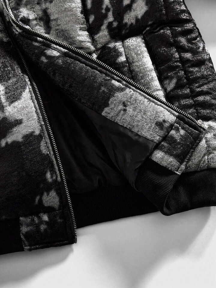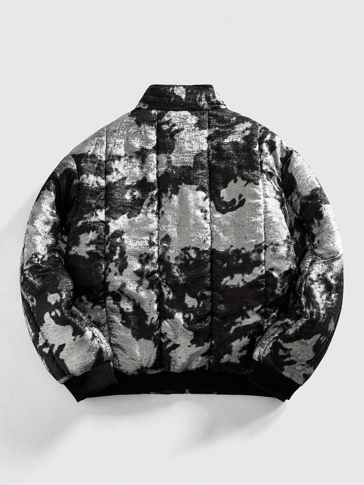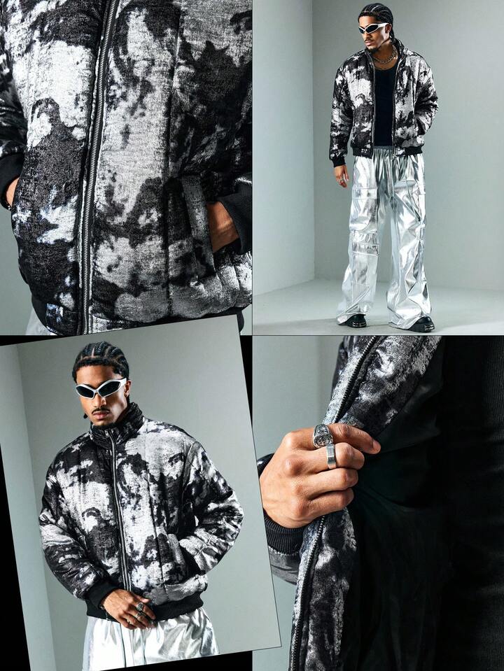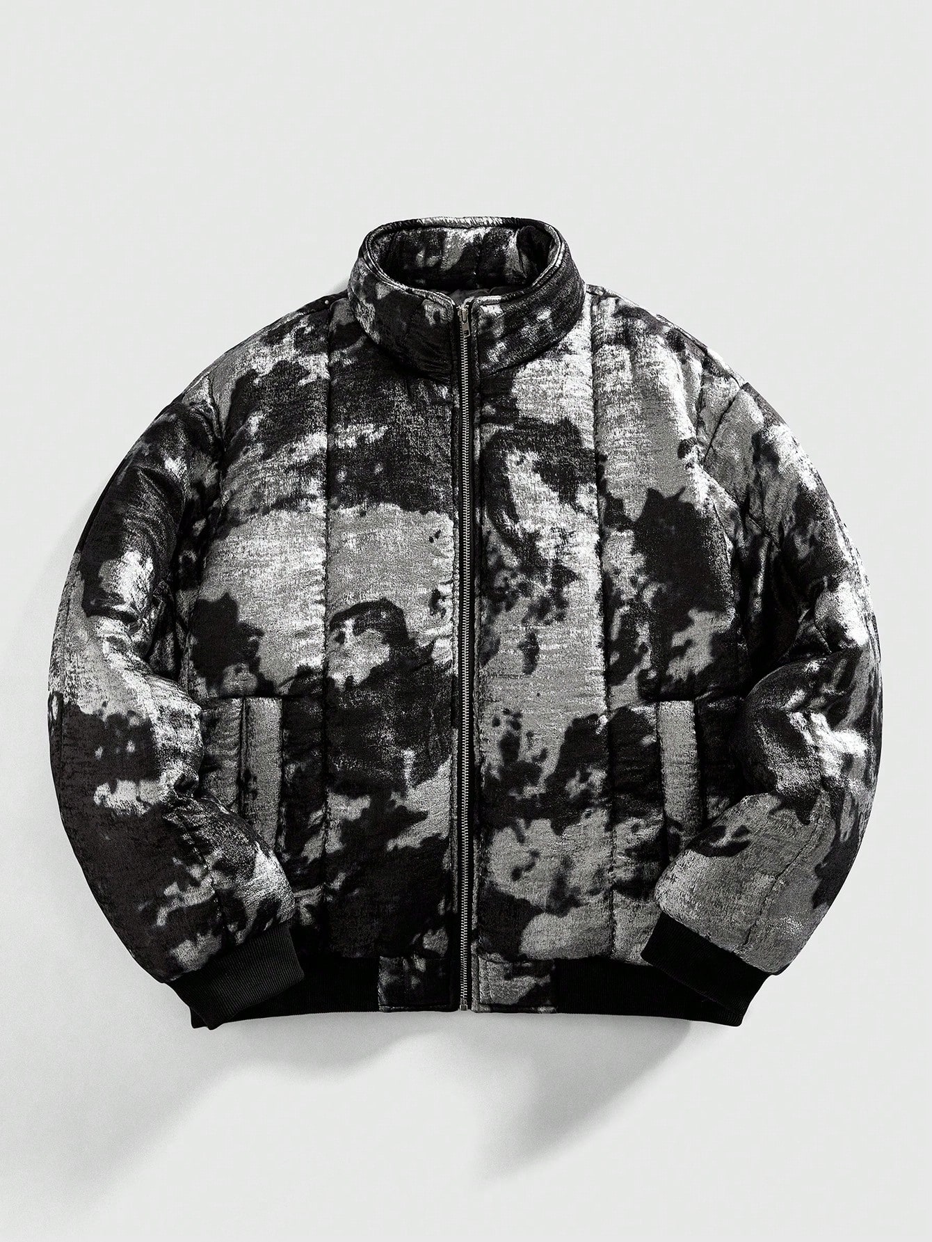 Street Life Cappotto imbottito con zip e texture scura alla moda per uomo