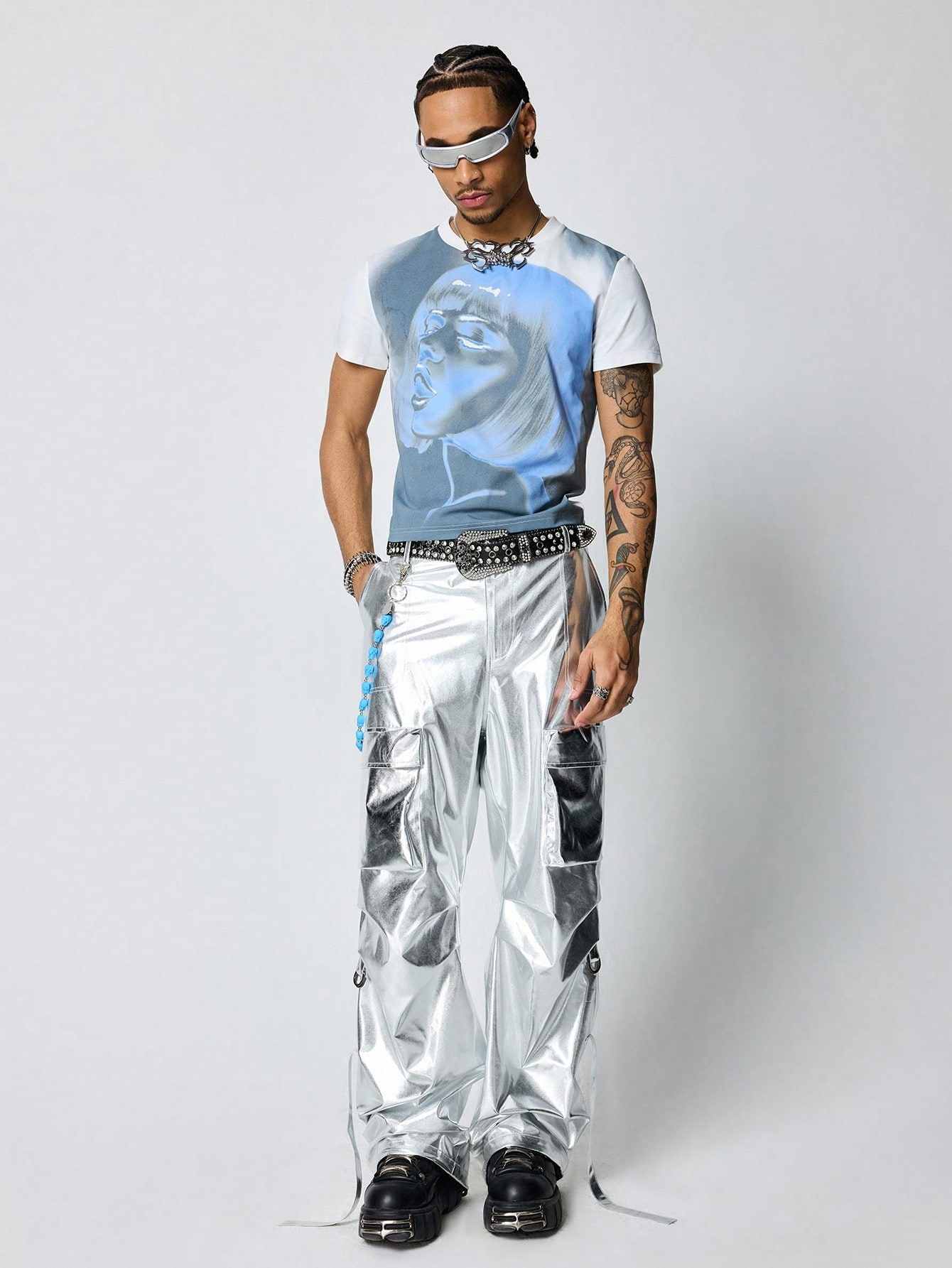 Street Life T-shirt estiva da uomo alla moda con stampa a figura e colori a contrasto