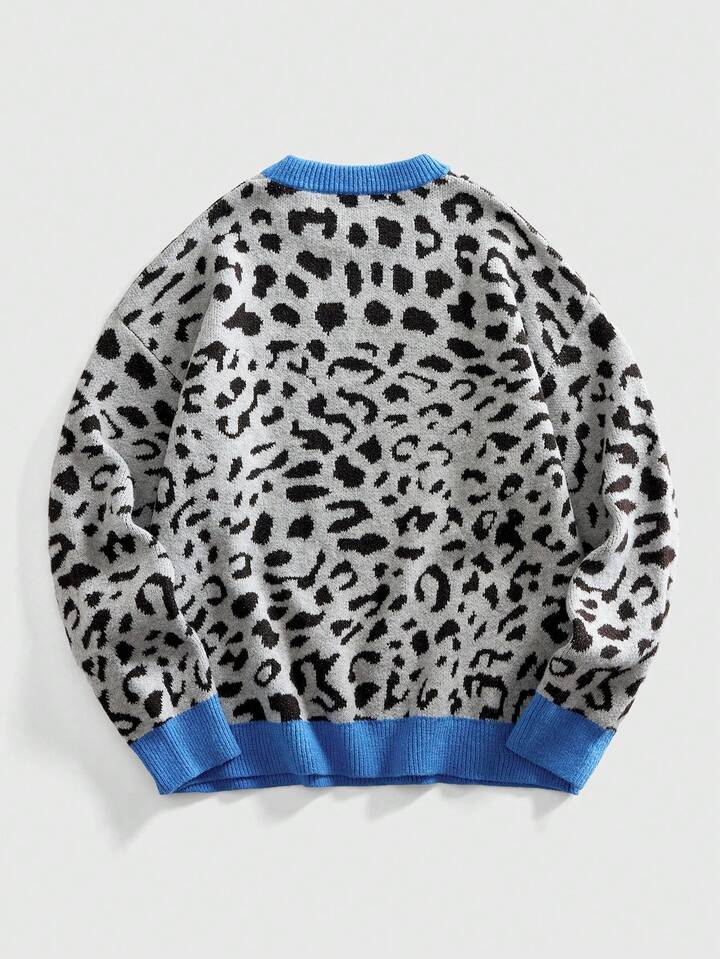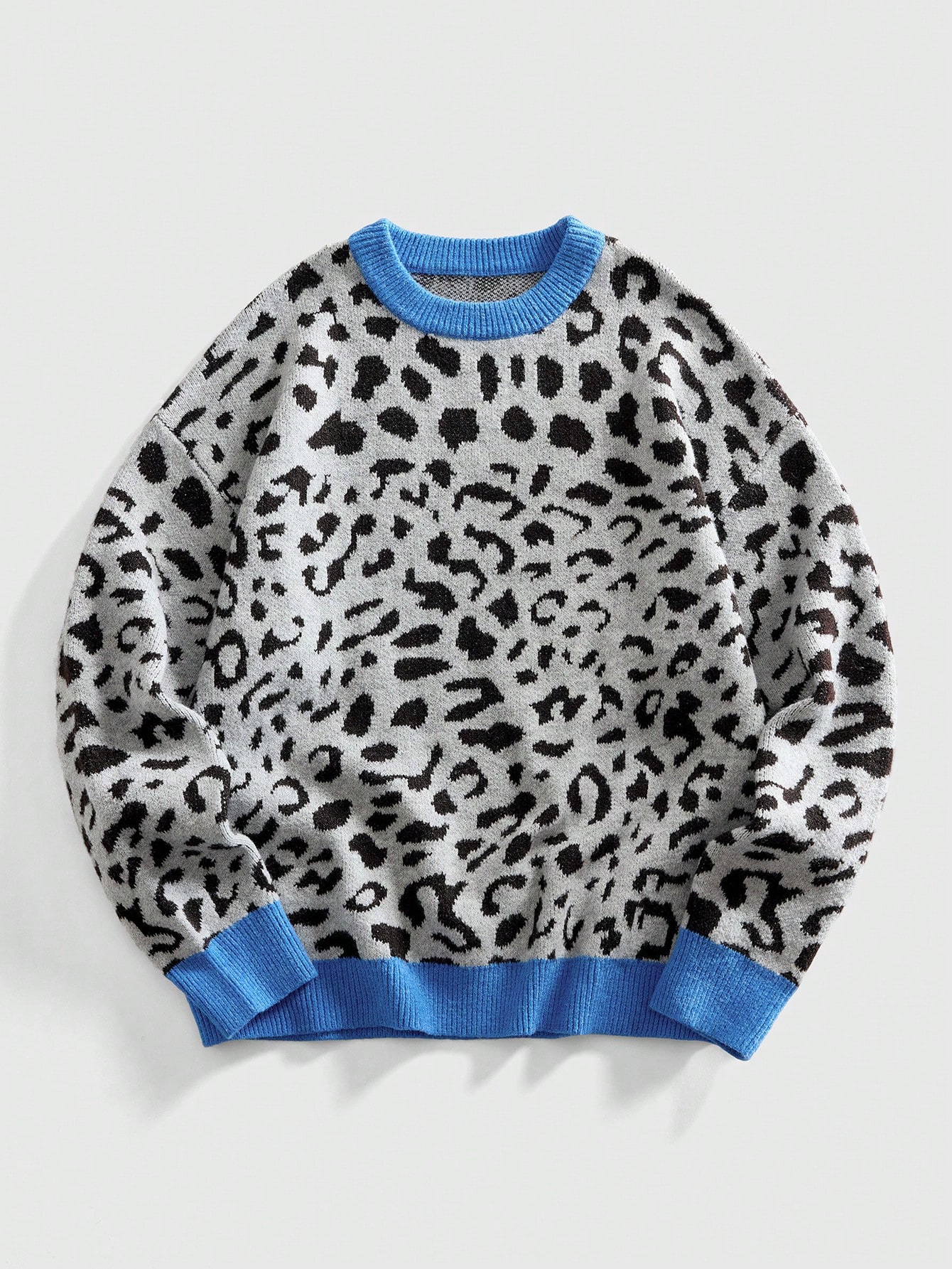 Street Life Maglione da uomo alla moda in maglia jacquard con motivo leopardato, adatto per l'autunno/inverno
