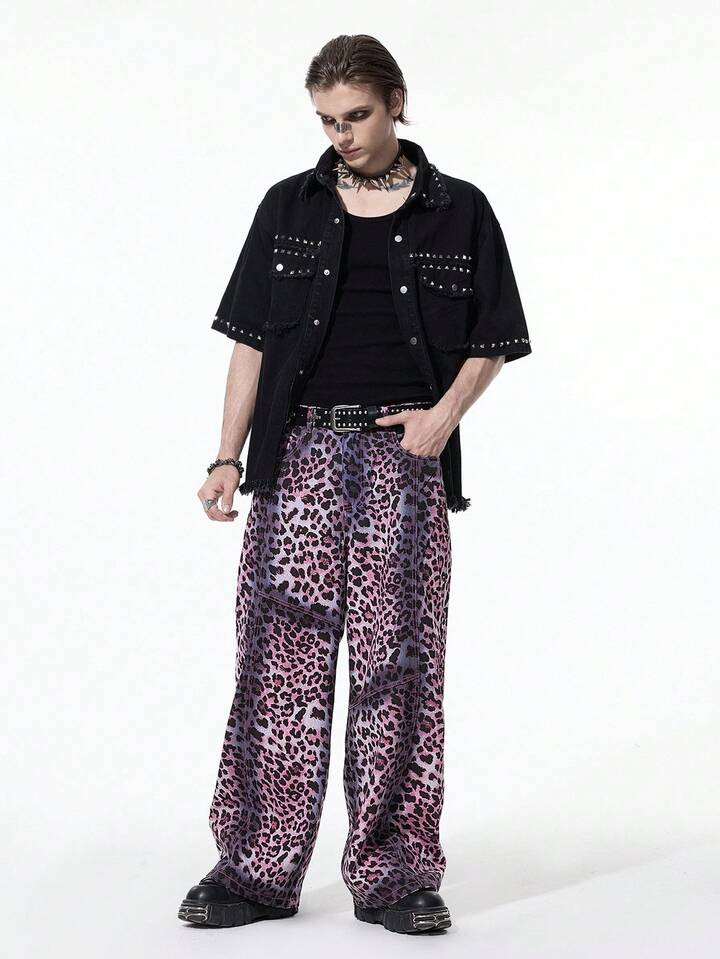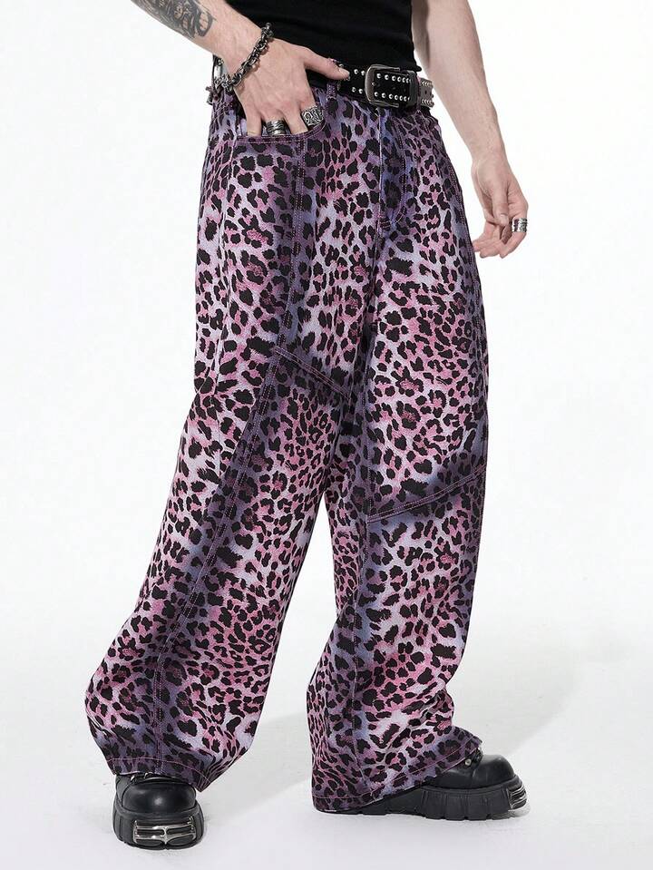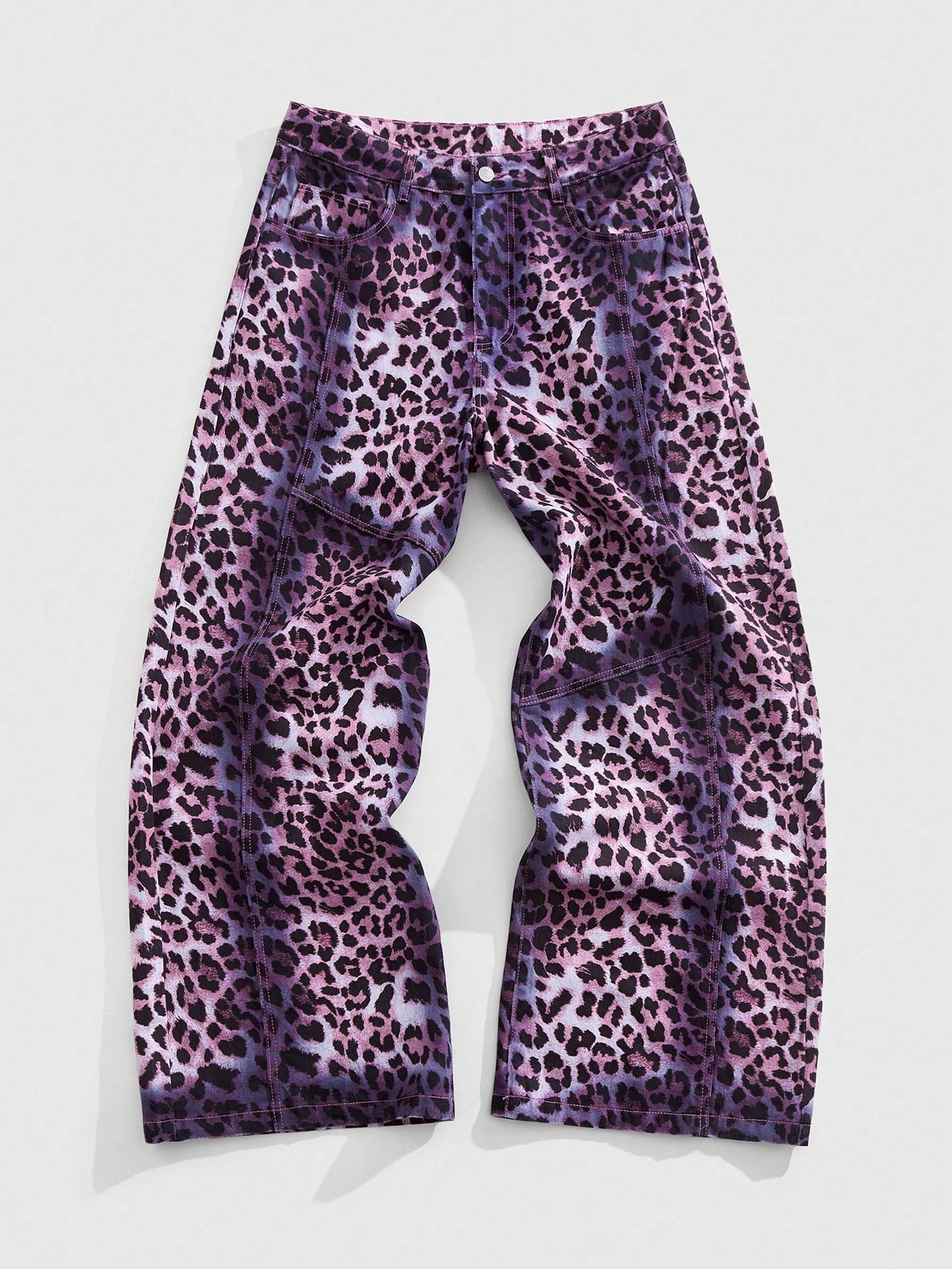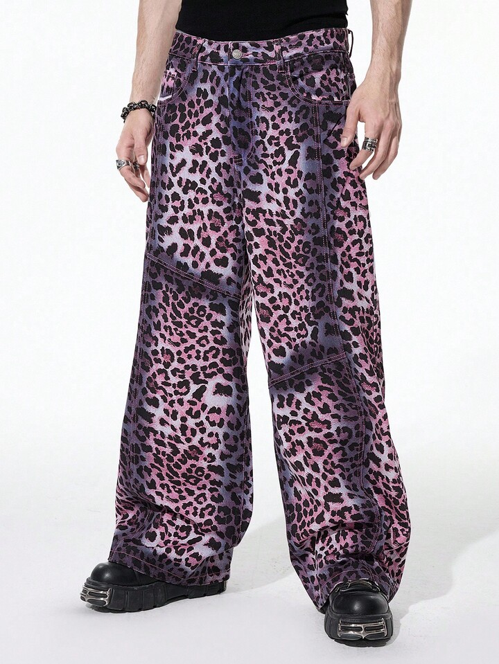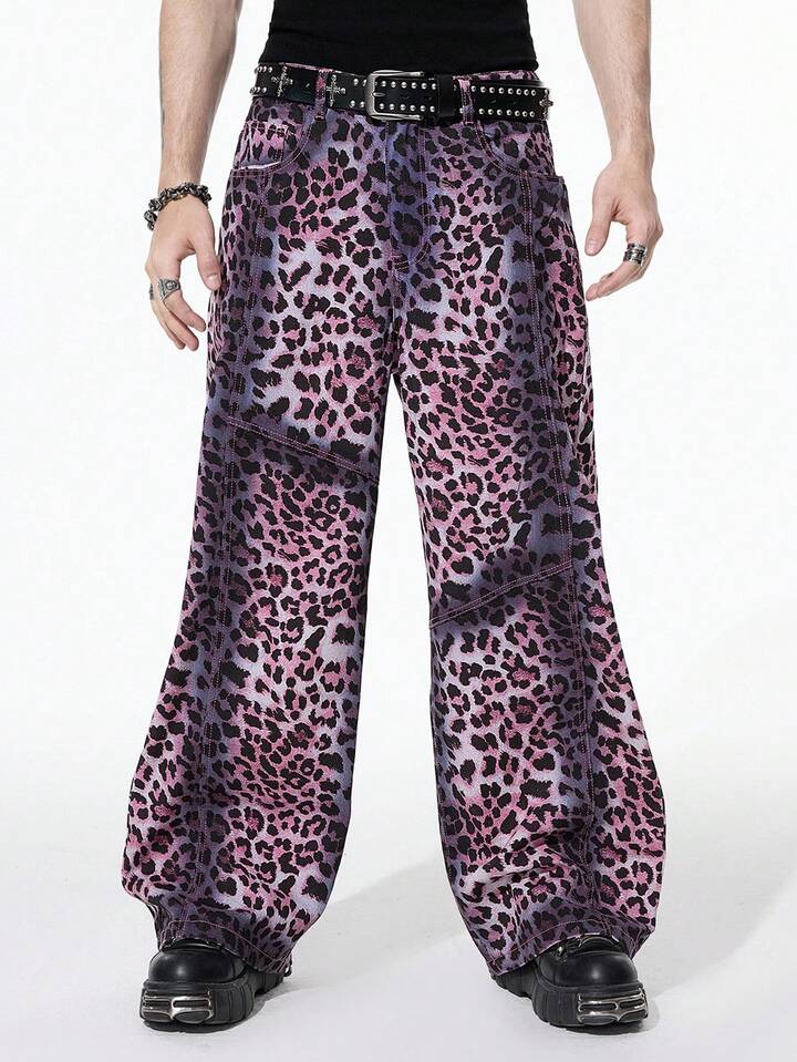 Street Life Jeans a gamba larga con stampa leopardata di moda da uomo
