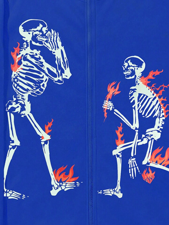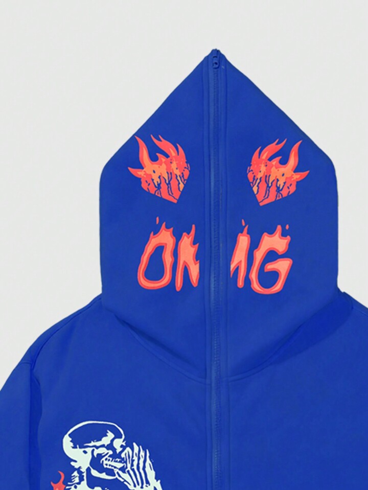 Felpa con cappuccio uomo dal design di moda con stampa di teschio e fiamme, autunnale