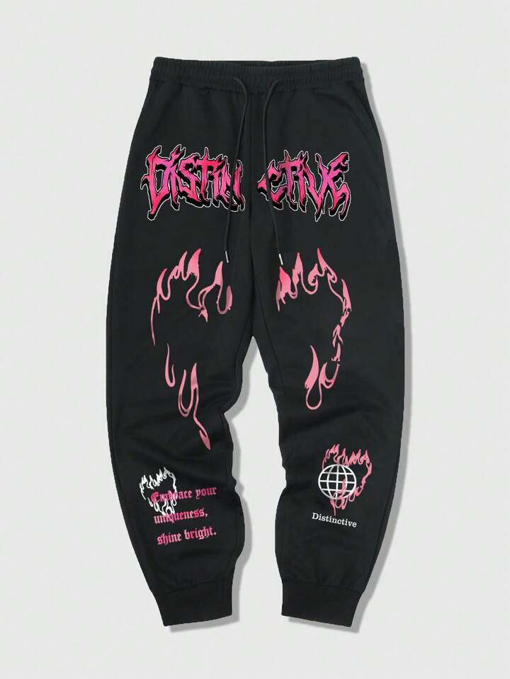 Street Life Pantaloni Sportivi Jogger Con Stampa Fiamma E Cordino Per Uomo