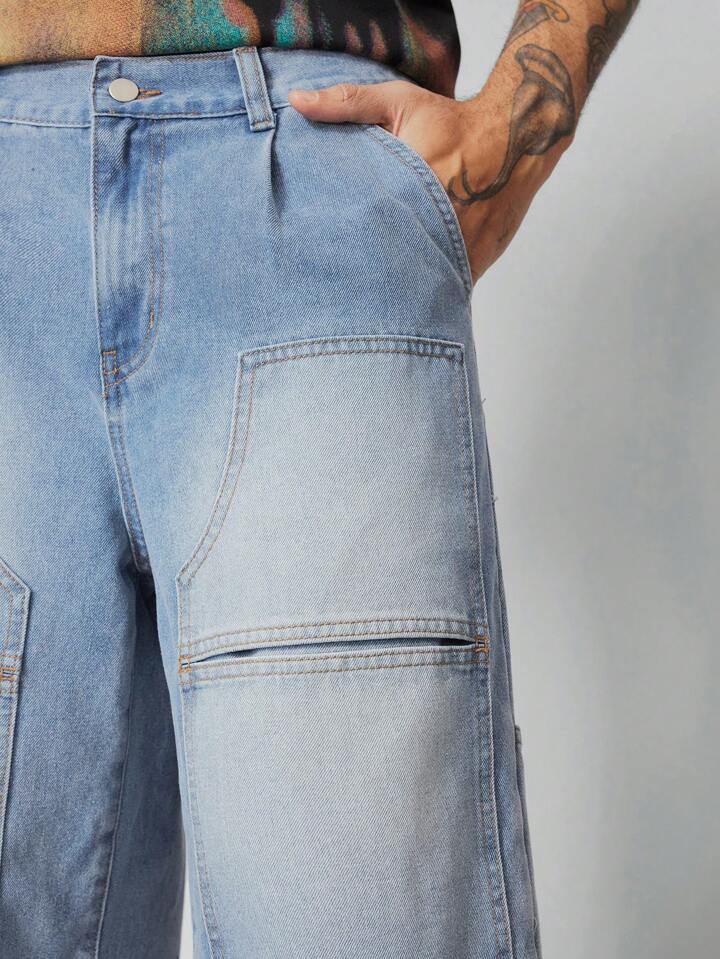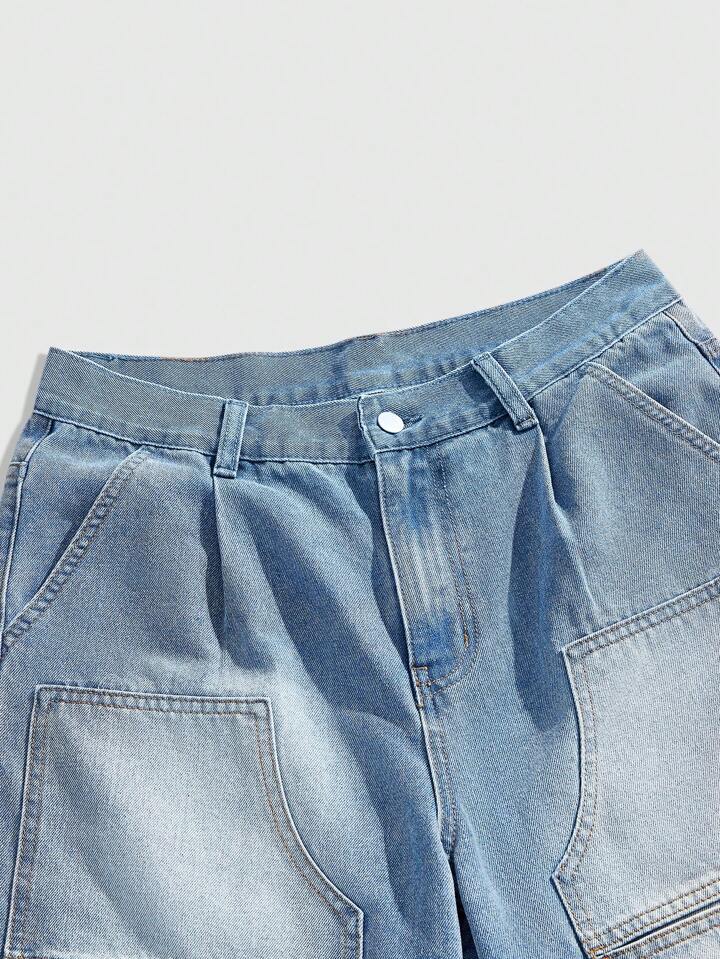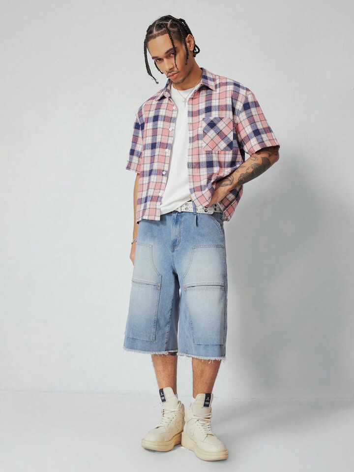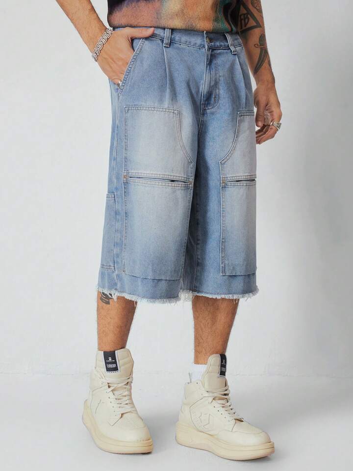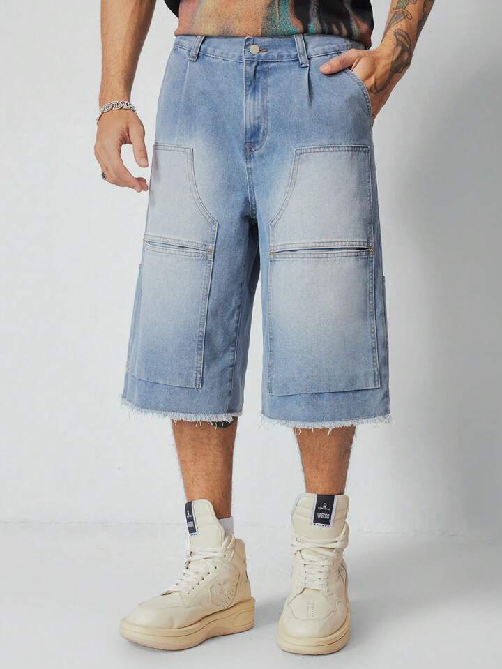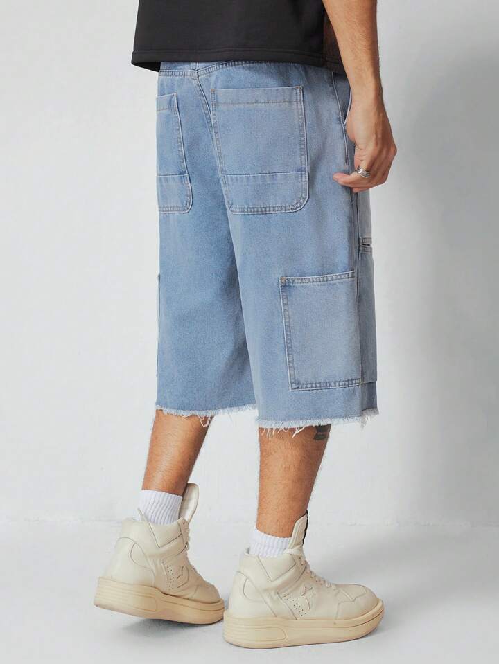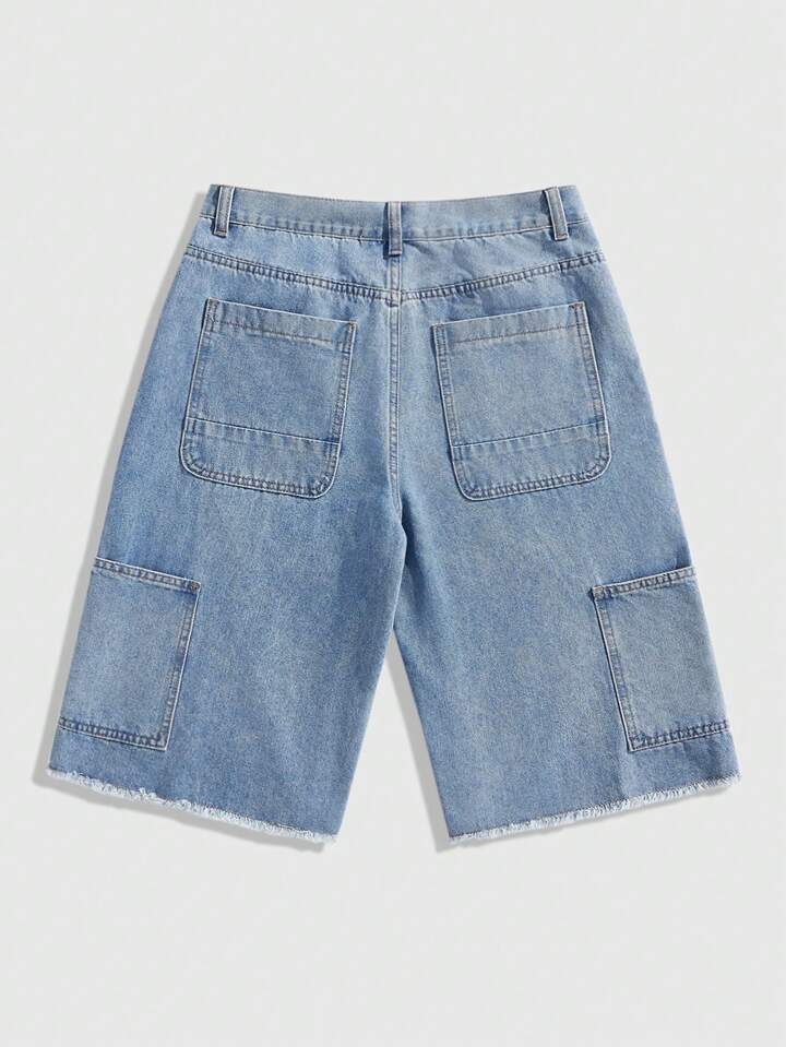 Street Life Pantaloncini in denim casual e semplici da uomo con tasche frontali e orlo grezzo