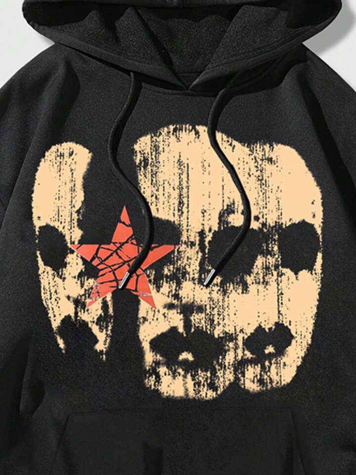 Street Life Felpa con cappuccio con grafica stampata e coulisse frontale, abbigliamento casual quotidiano da uomo