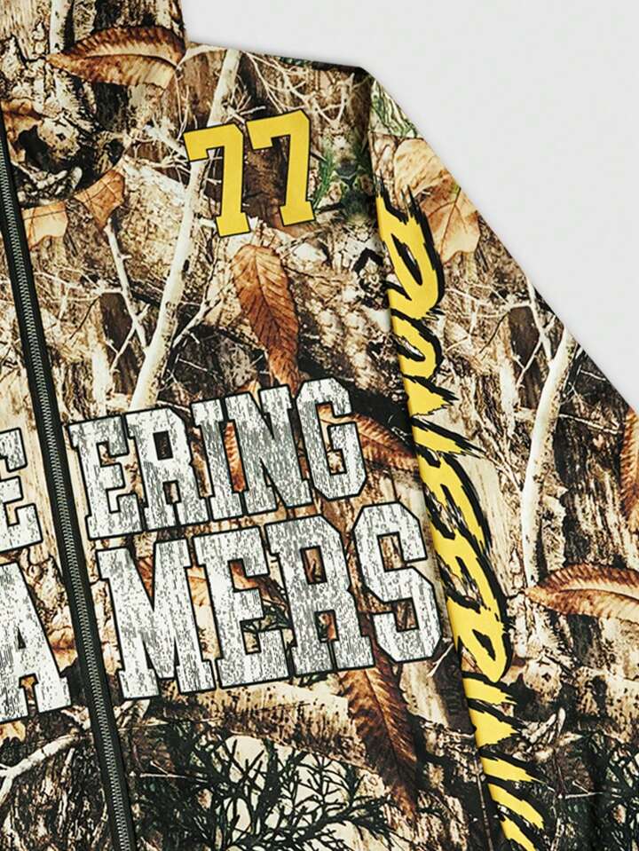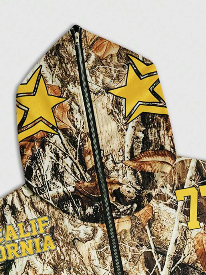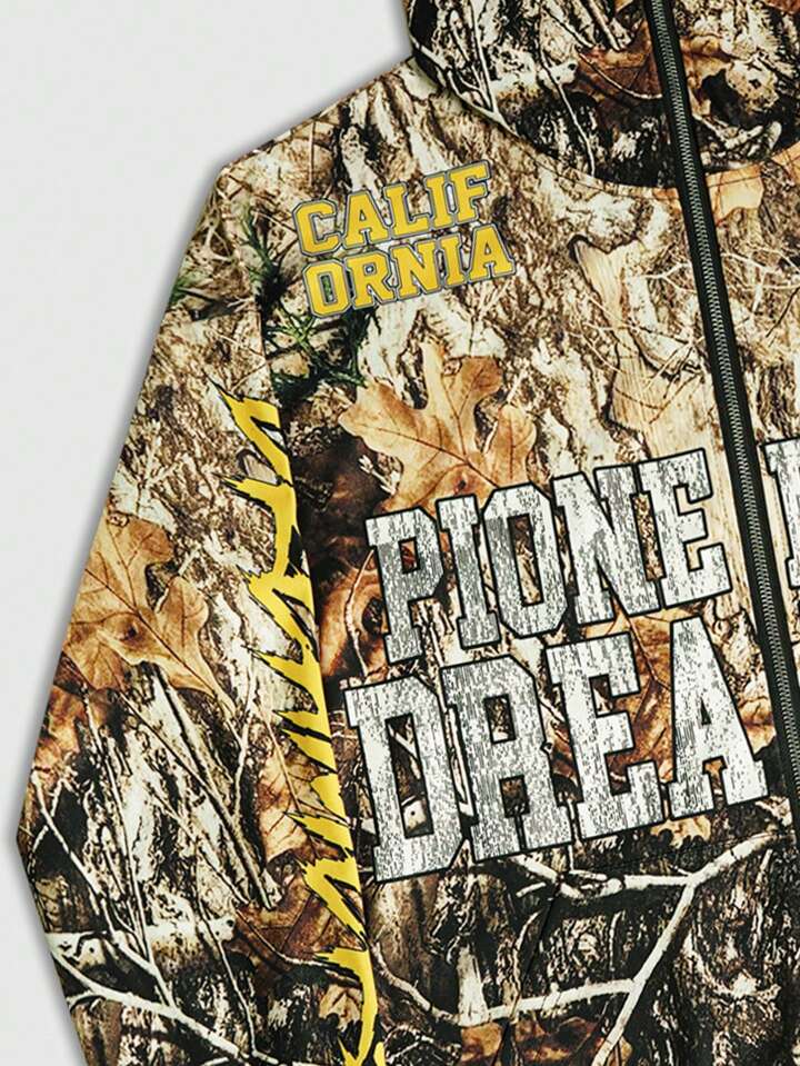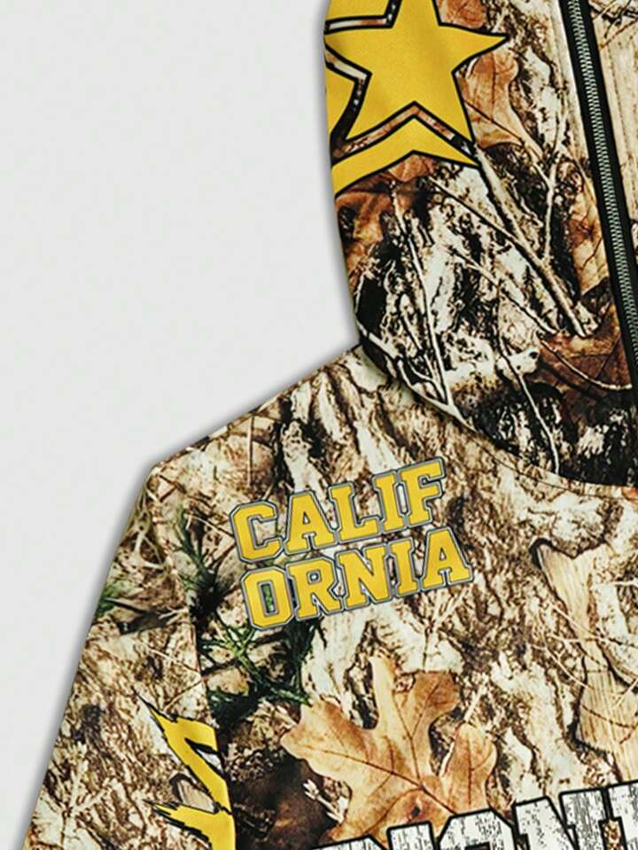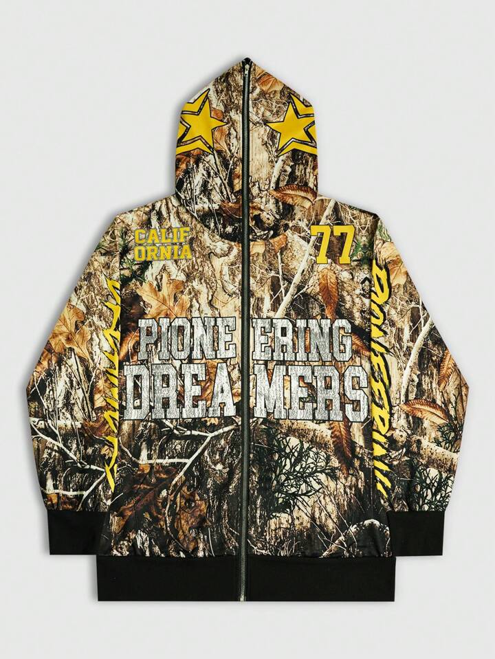 Street Life Felpa con cappuccio e chiusura lampo completa da uomo con stampa digitale di lettere