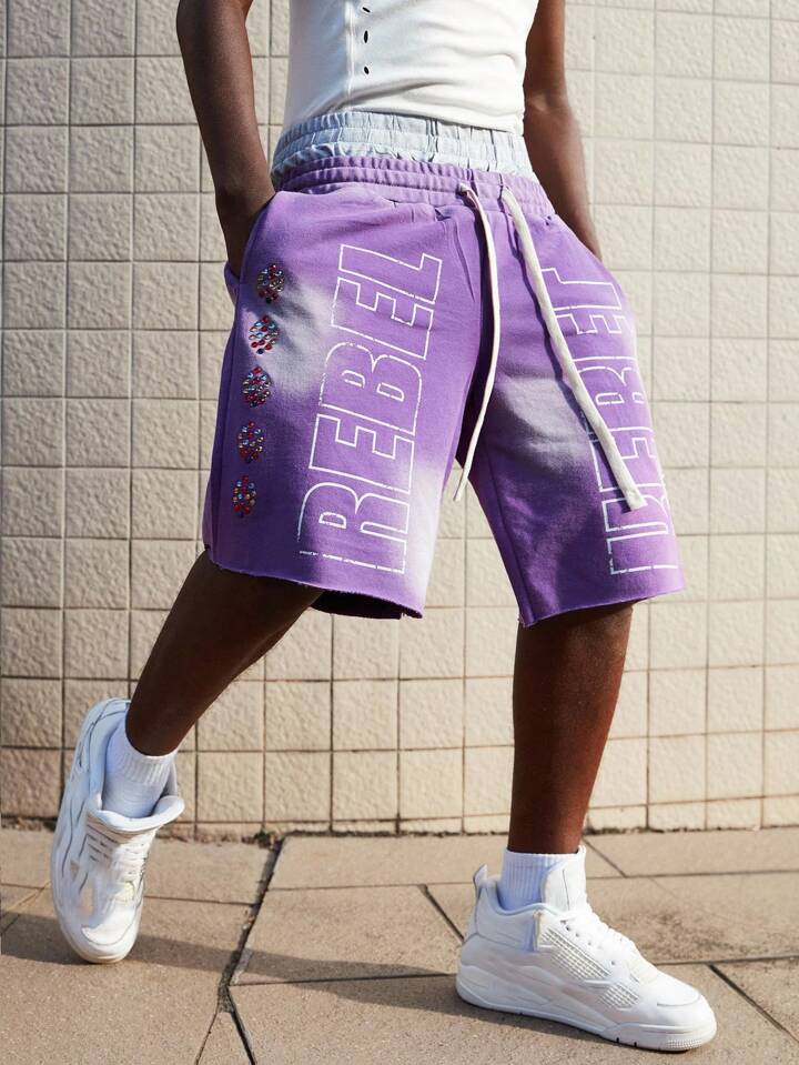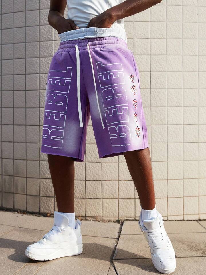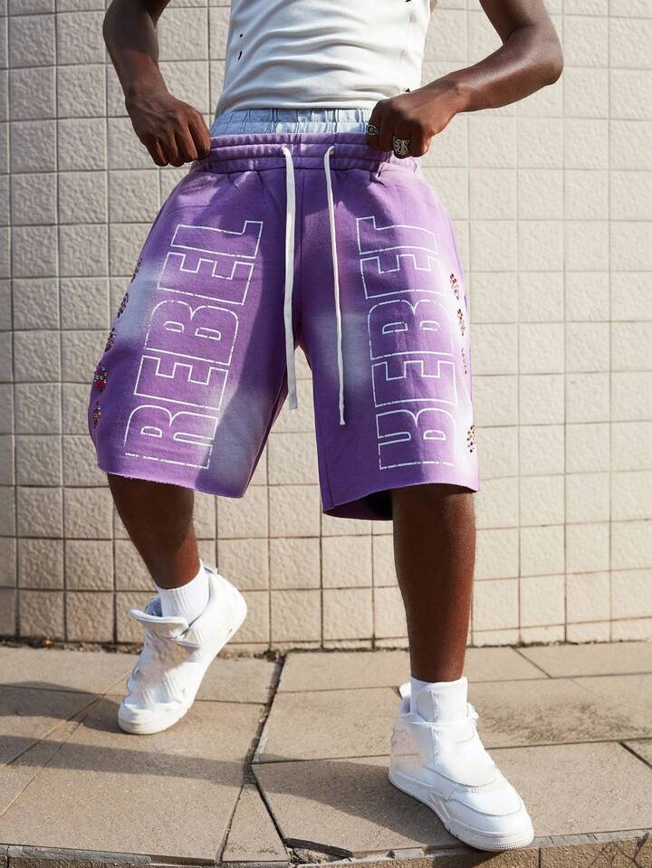Street Life Pantaloncini da uomo con stampa, vita con coulisse e strass a forma di diamante