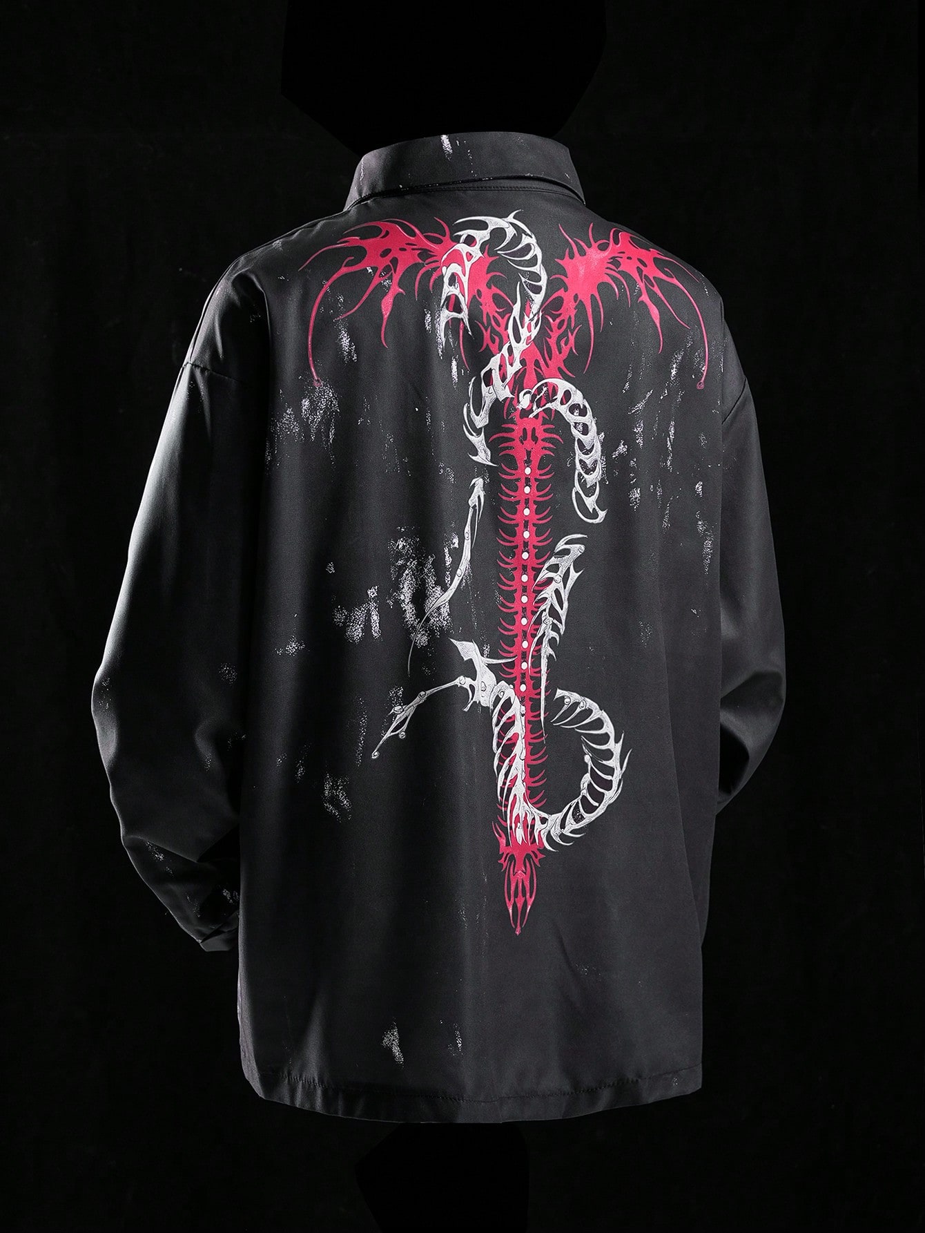 Street Life Camicia a maniche lunghe monopetto in stile gotico scuro da uomo, autunnale