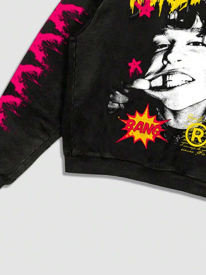 Street Life Felpa con cappuccio da uomo con stampa grafica di fiocchi di neve e slogan, adatta per primavera e autunno