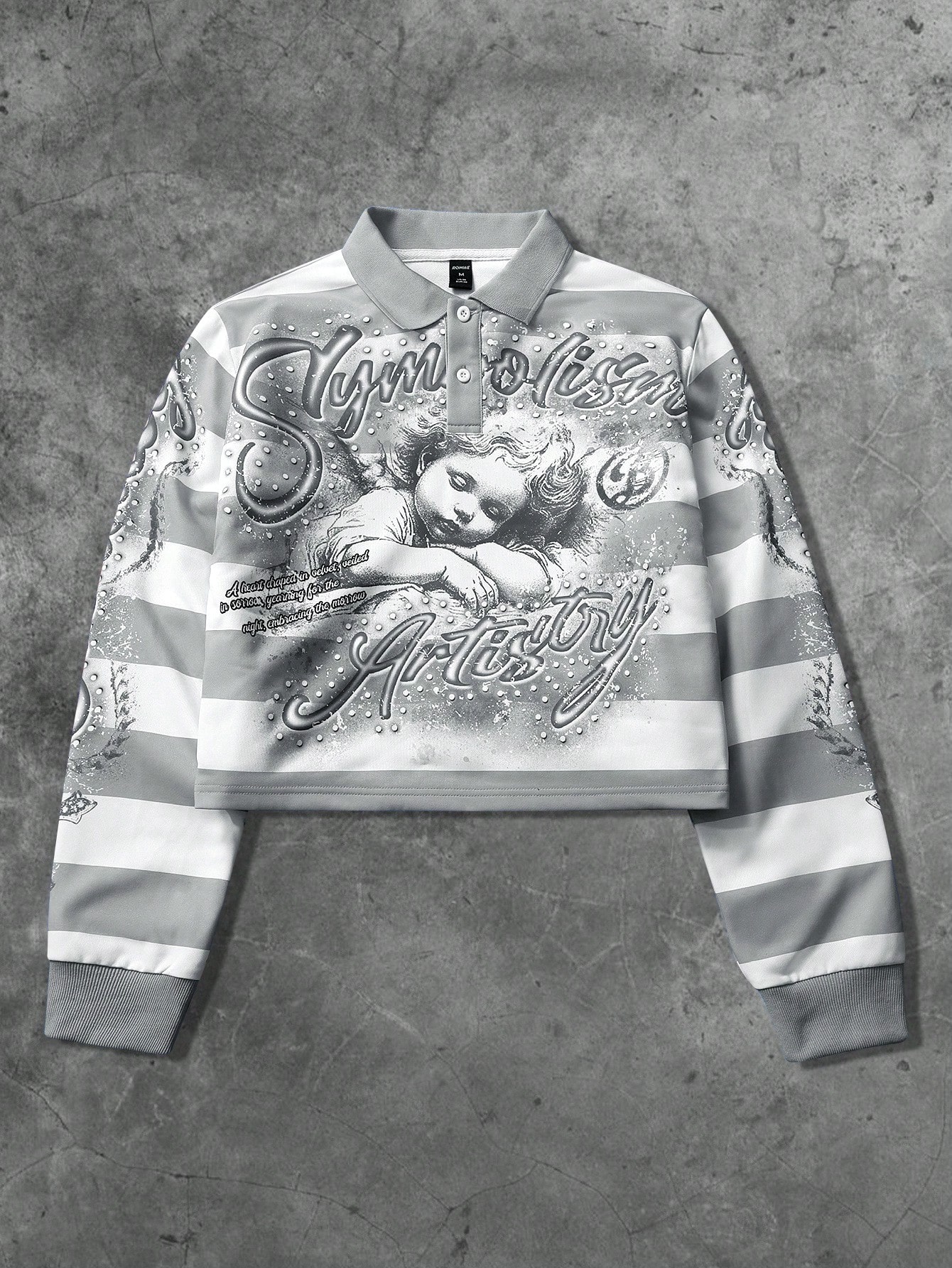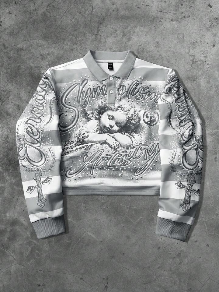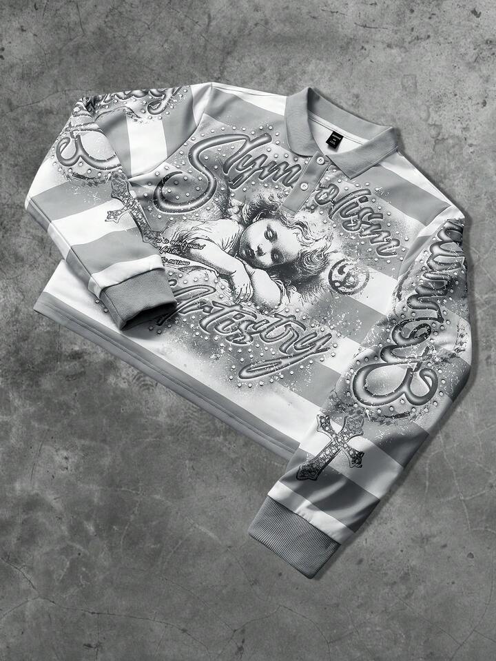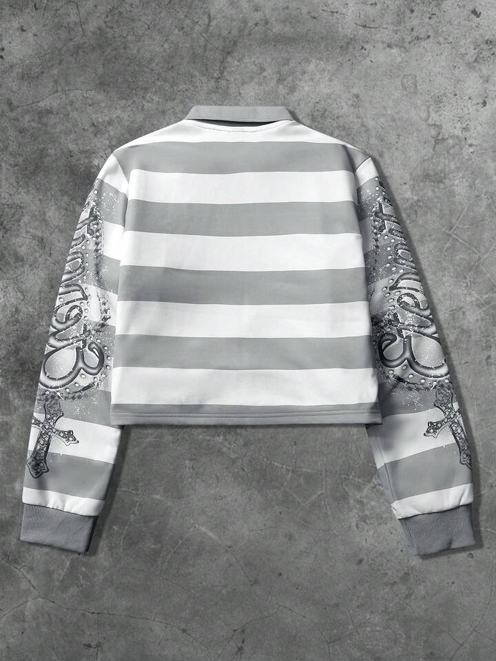 Street Life Felpa da uomo con mezza chiusura lampo, maniche lunghe, a righe, con stampa di moda