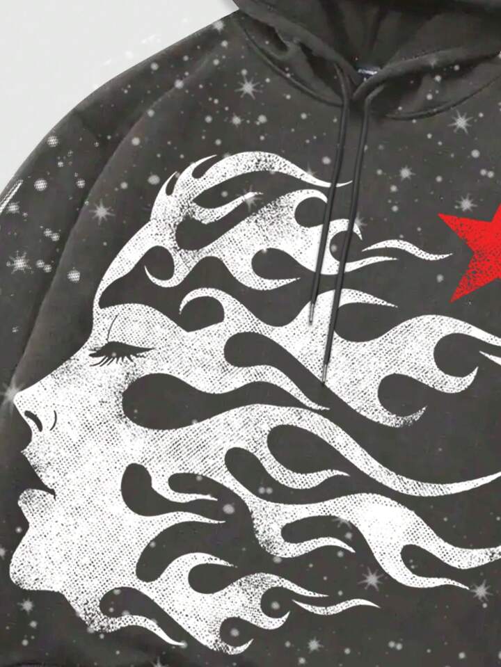 Street Life Felpa con cappuccio, maniche lunghe, coulisse, casual, con grafica ritratto creativa, per uomo, autunno inverno