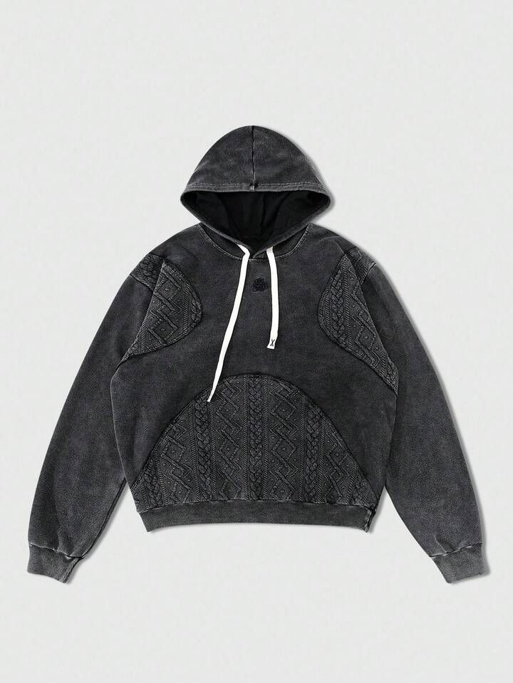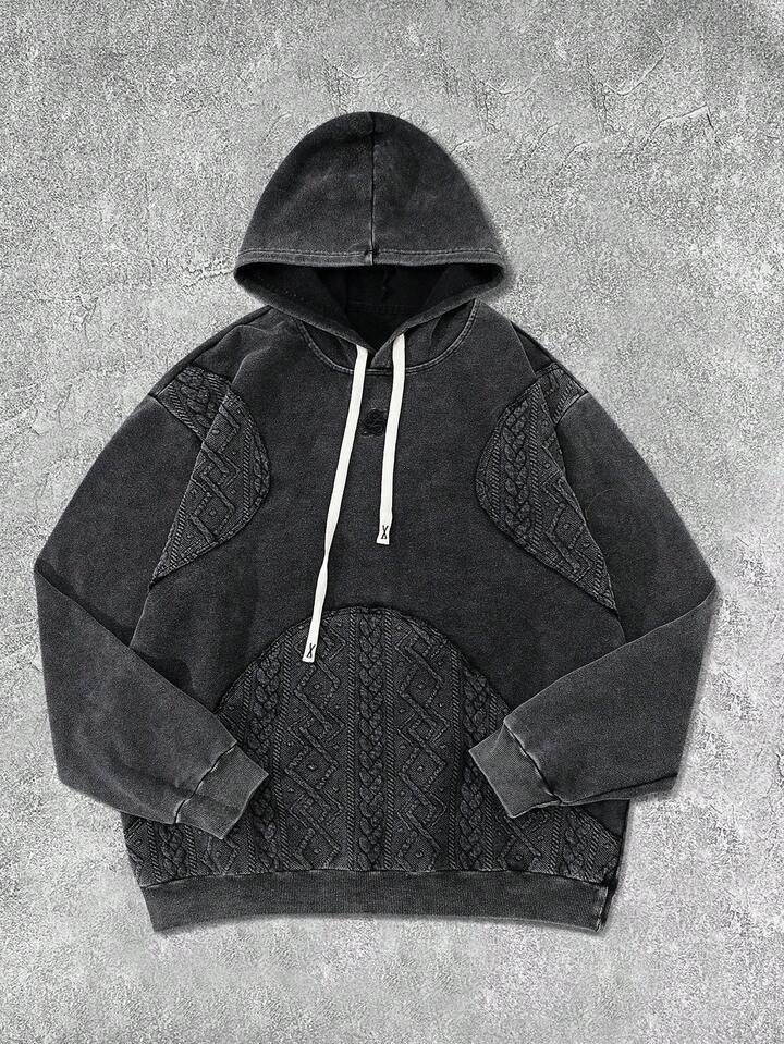Street Life Felpa con cappuccio da uomo, stile di strada americano, felpa con cappuccio effetto patchwork, autunnale