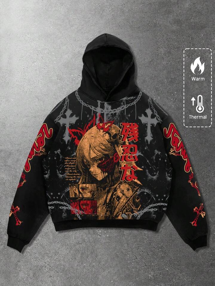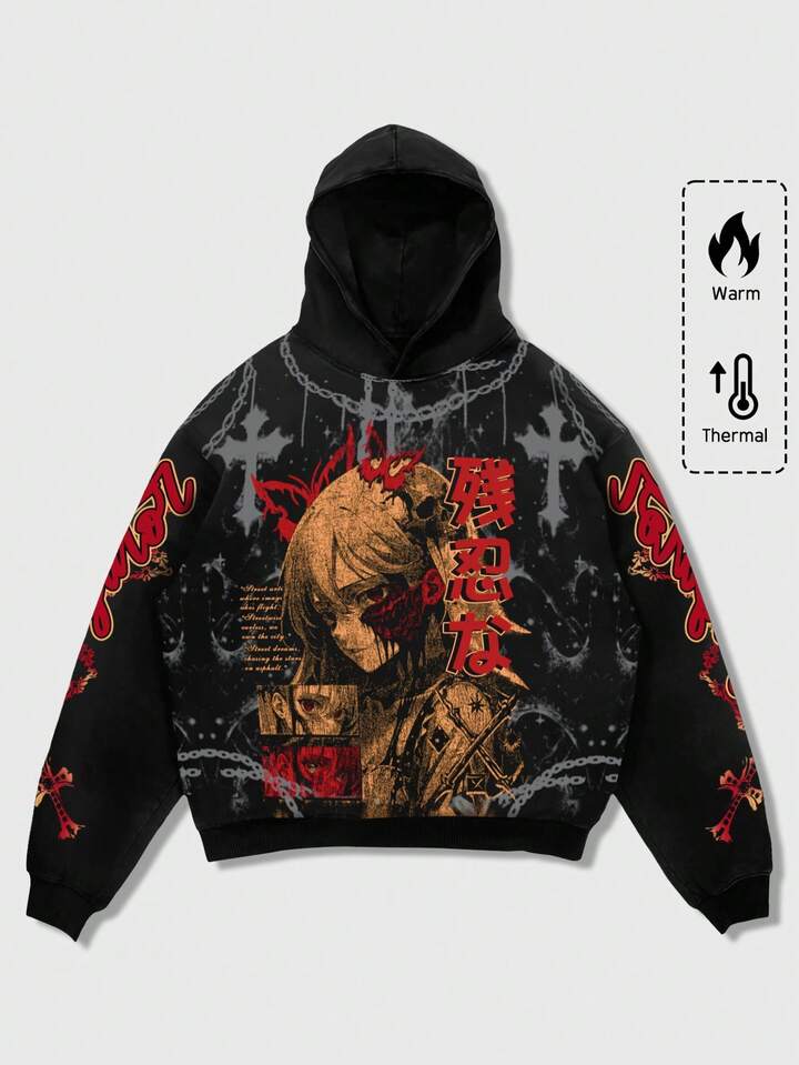 Street Life Felpa con cappuccio da uomo, stile casual da strada, popolare stampa grafica occhio americano su felpa corta, autunno/inverno