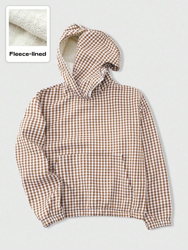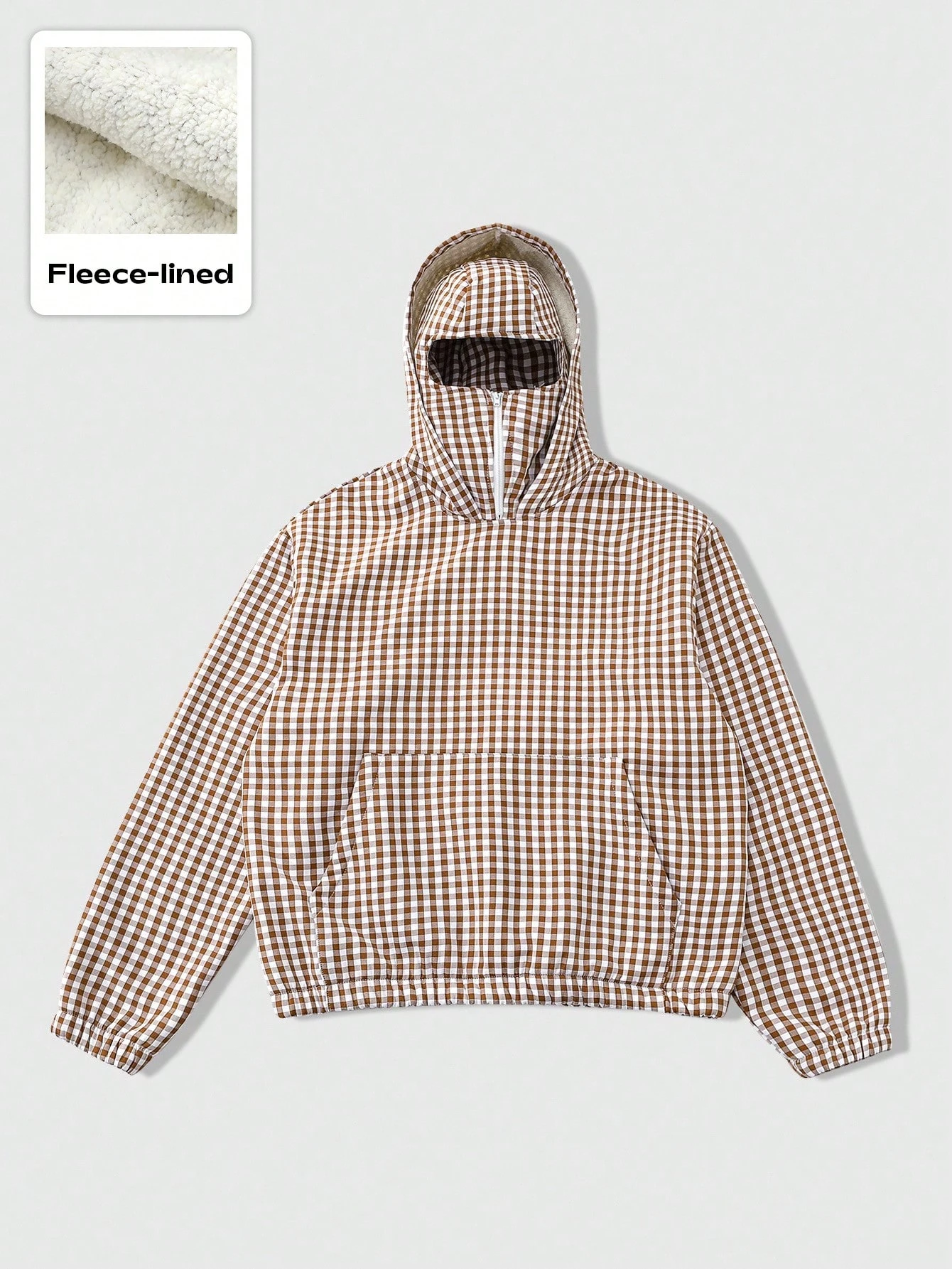 Street Life Felpa con cappuccio da uomo, felpa con cappuccio in pile composito a quadri per uso quotidiano, stile americano da strada, autunno inverno
