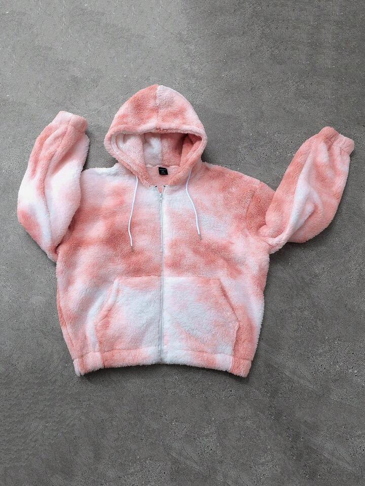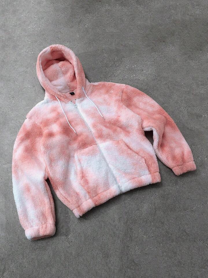 Street Life Felpa con cappuccio da uomo, felpa con cappuccio in finta pelliccia con effetto tie-dye stile americano, autunno inverno