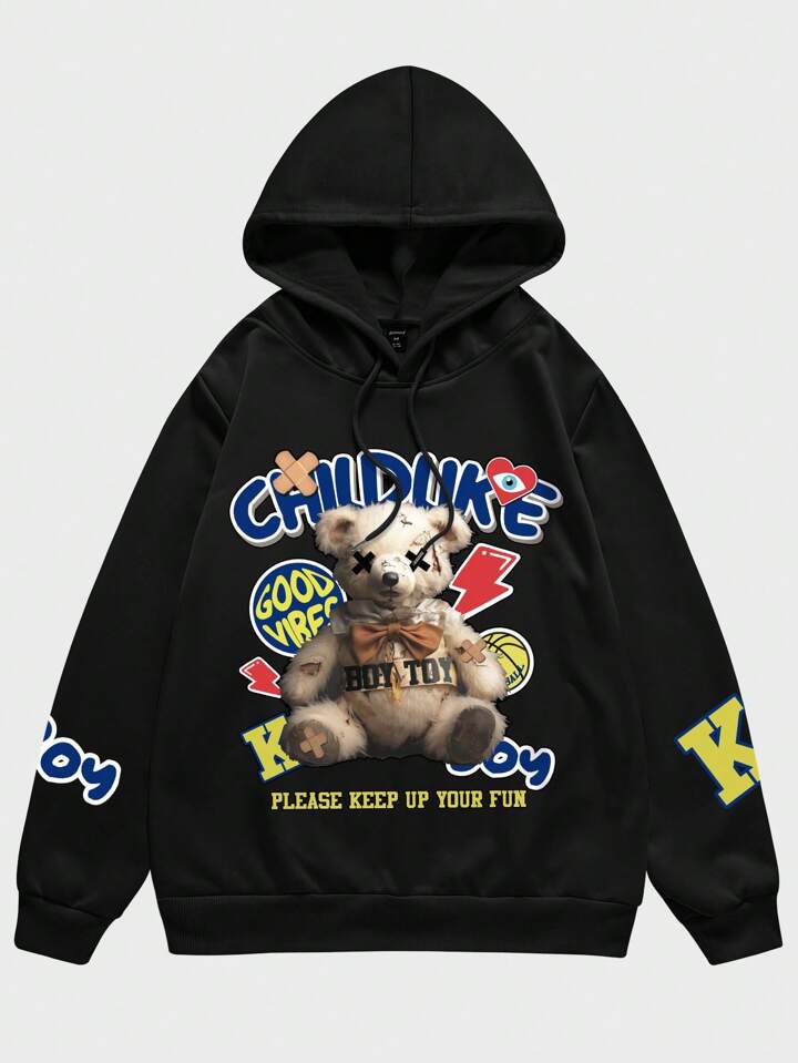 Street Life Felpa Con Cappuccio Da Uomo Con Design Stampato Orso E Slogan