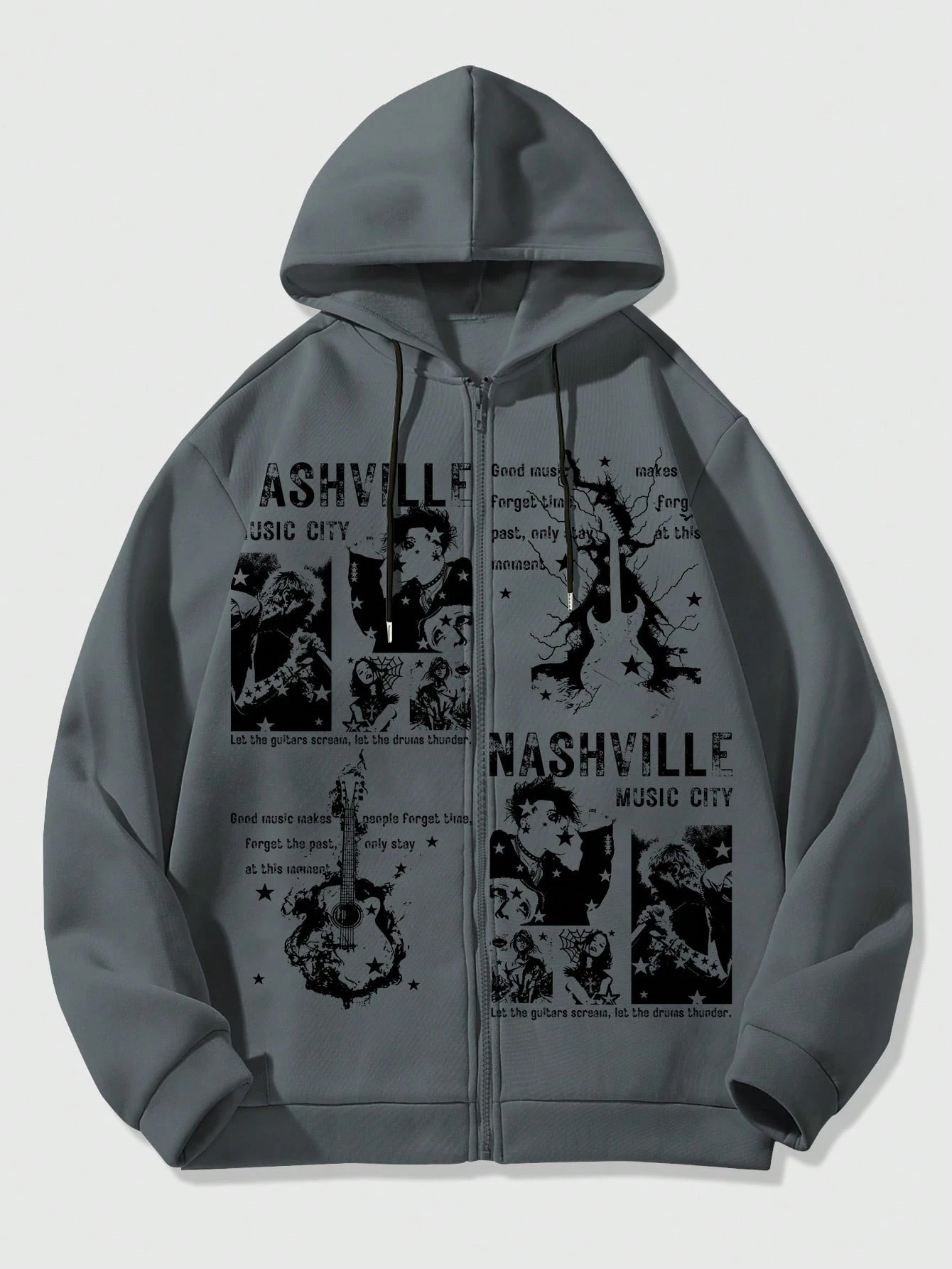 Street Life Felpa Con Cappuccio Da Uomo Con Stampa Di Slogan E Personaggi