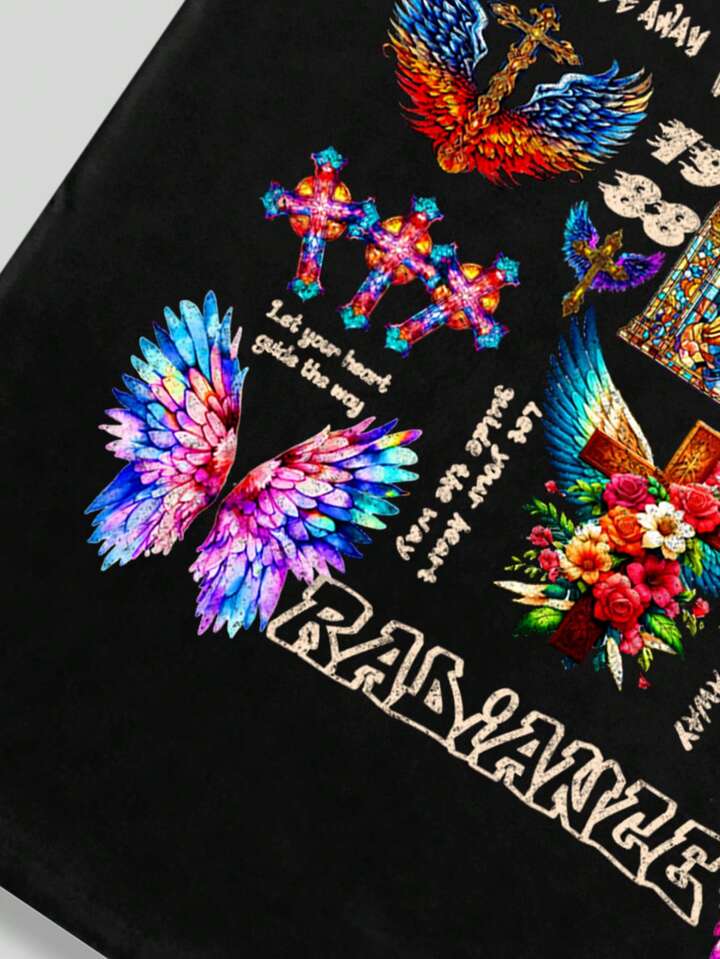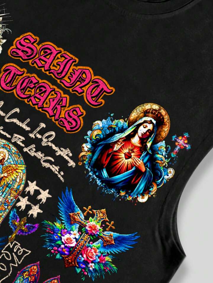 Street Life Canotta da uomo con stampa di croci, ali e immagini di Gesù Cristo e della Vergine Maria, adatta per concerti