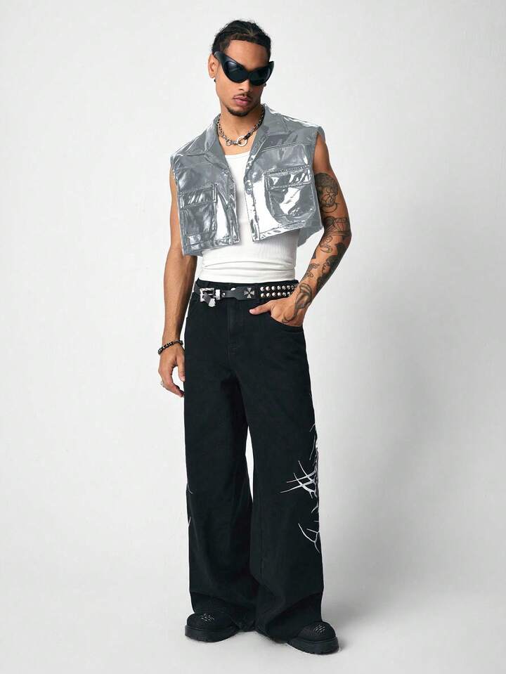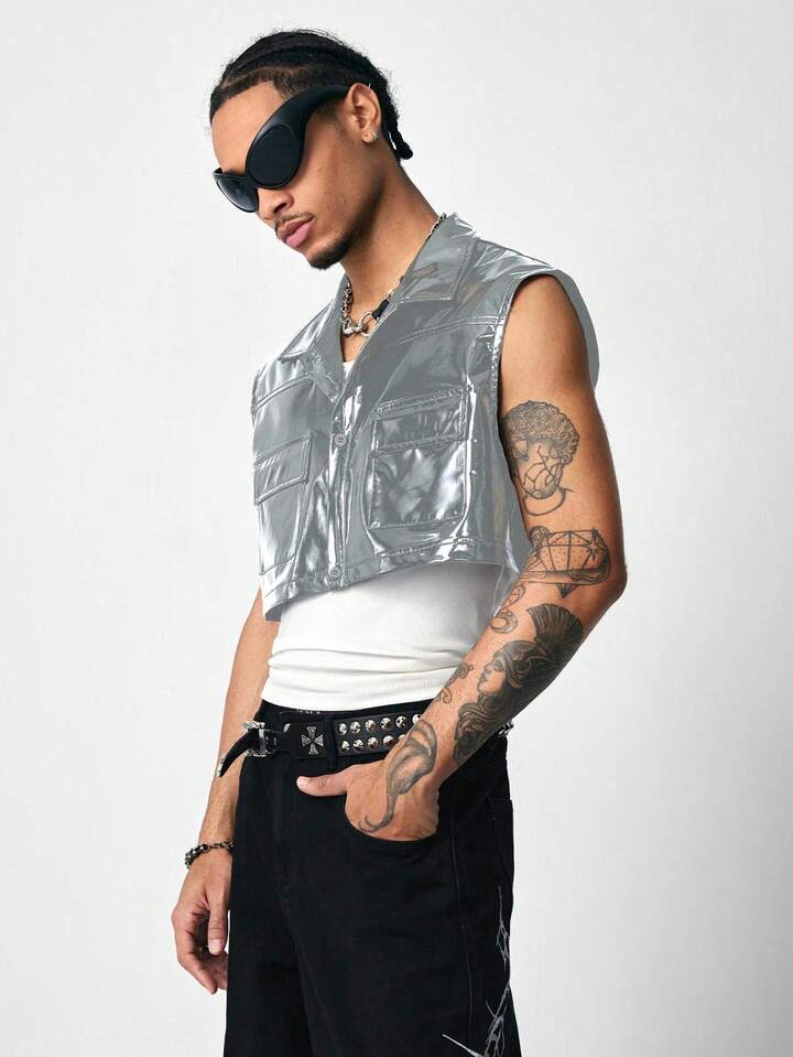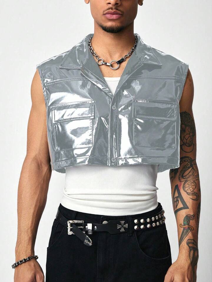 Street Life Gilet corto da uomo in stile Y2K con tasche anteriori a patta, adatto per estate, autunno e inverno