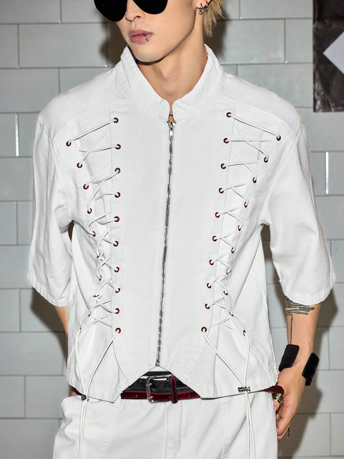 Street Life Giacca di jeans con lacci, stile boyband da uomo