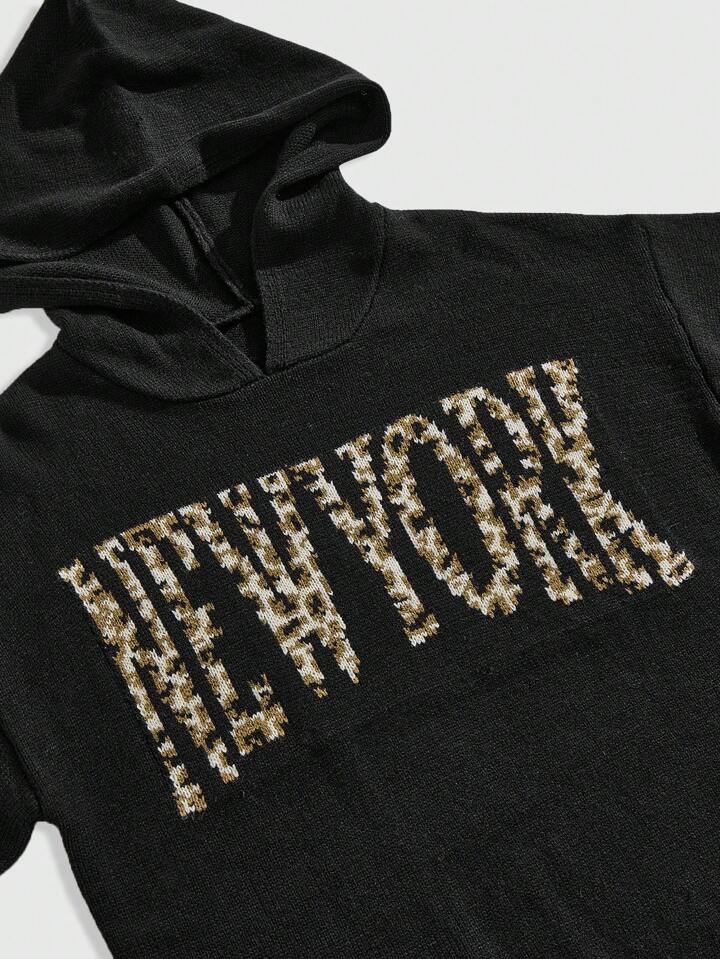 Street Life Felpa con cappuccio in maglia con lettera e stampa leopardata, casual, vestibilità ampia, per uomo