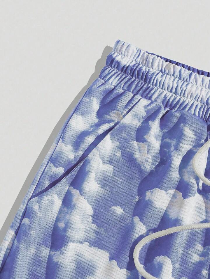 Street Life Pantaloncini da basket da uomo con stampa di lettere e nuvole, vita con coulisse e tasche