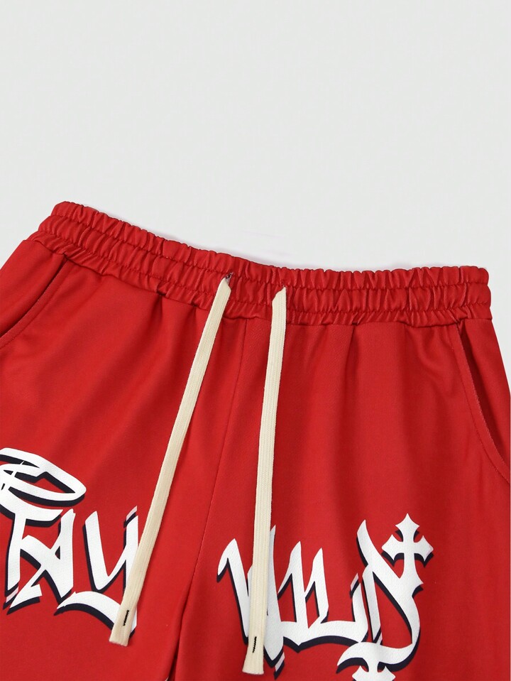 Street Life Pantaloni della tuta con coulisse e tasche con stampa di lettere e croci per uomo
