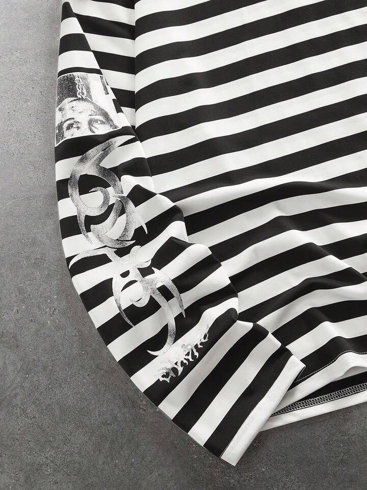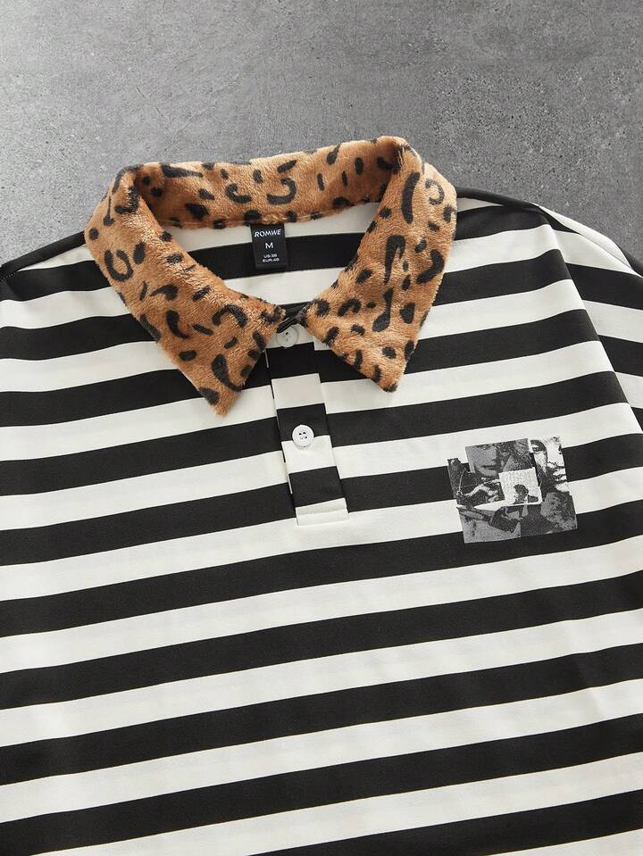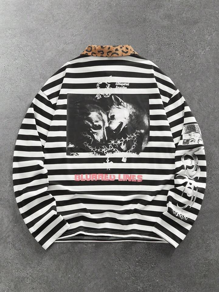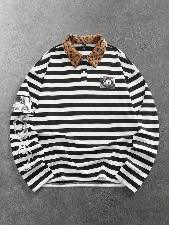 Street Life Maglietta a maniche lunghe da uomo con colletto polo, stampa a righe con lettere e numeri