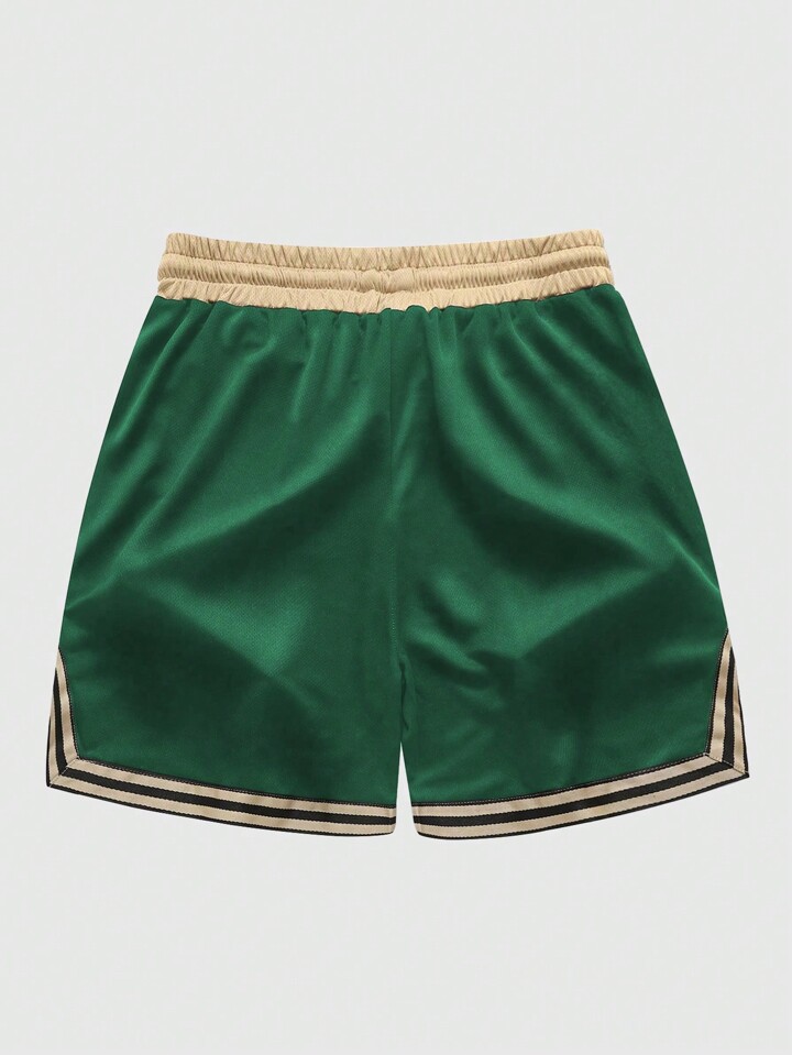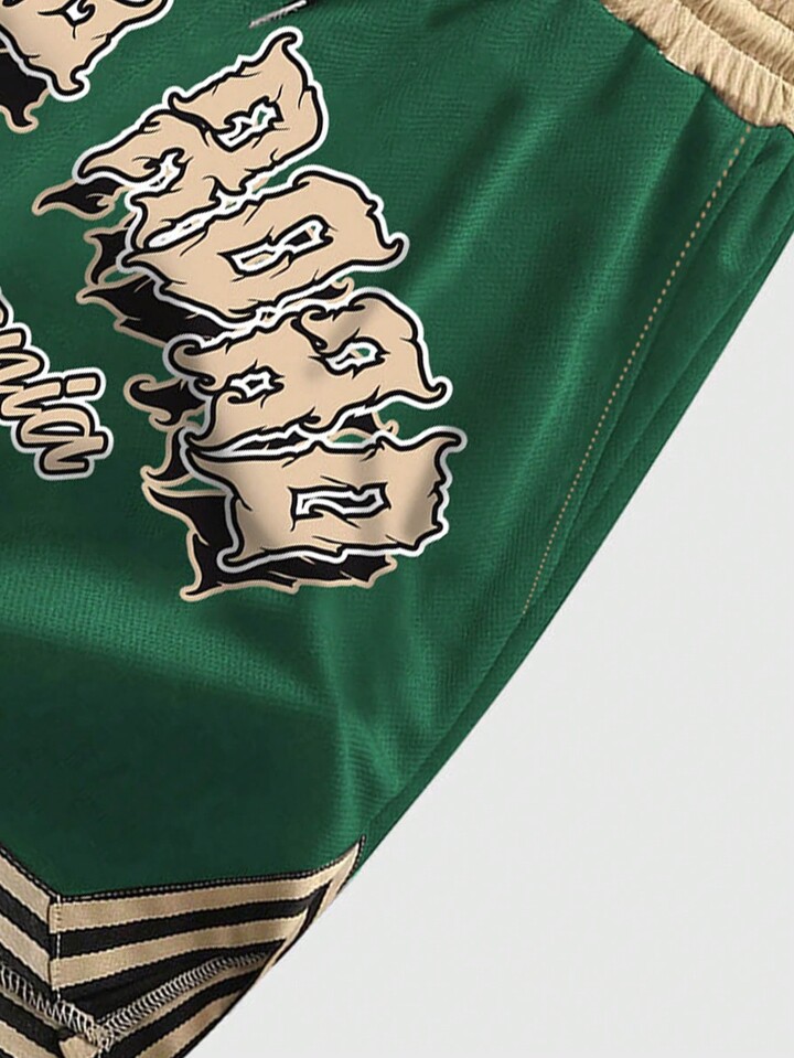 Street Life Pantaloncini da basket con grafica a lettera, bordo a righe e coulisse in vita per uomo, adatto per la scuola