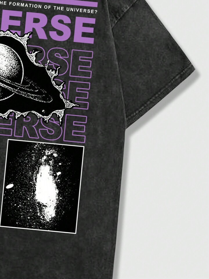 Street Life Maglietta a maniche corte da uomo con stampa di lettere e pianeti, con scollo tondo, adatta per l'uso quotidiano in primavera e estate, per la scuola
