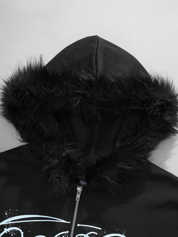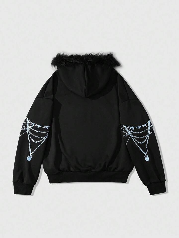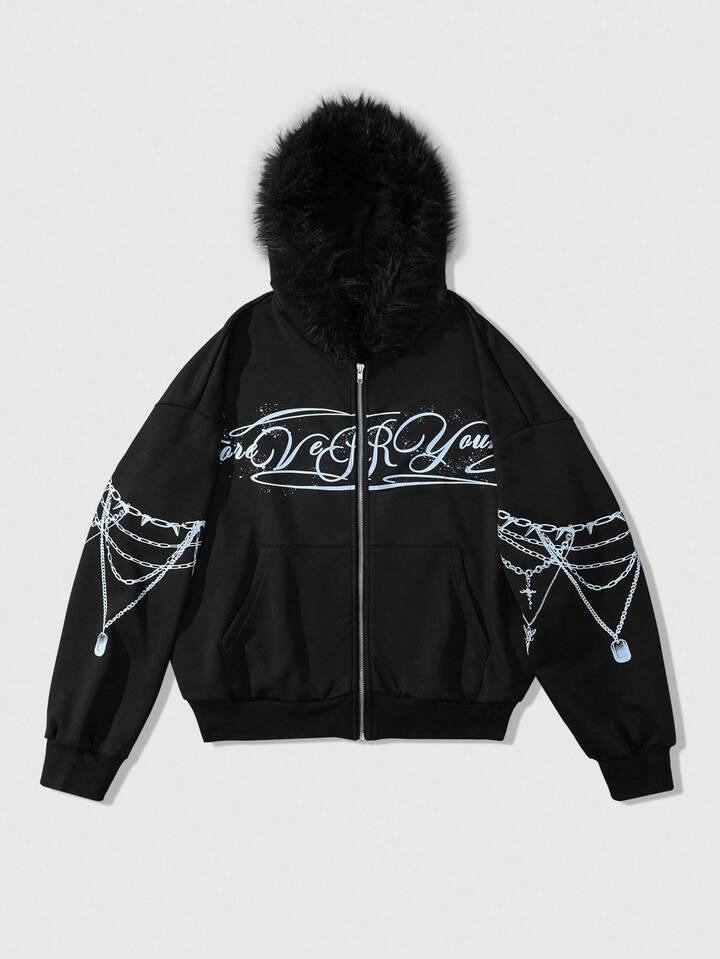 Street Life Felpa con cappuccio in pile con stampa di lettere, autunno/inverno, da uomo