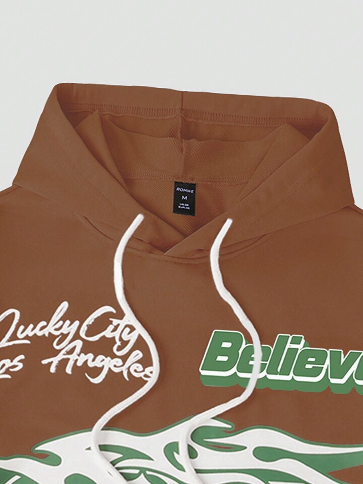 Street Life Felpa con cappuccio minimalista da uomo con stampa a lettere, per uso casual quotidiano
