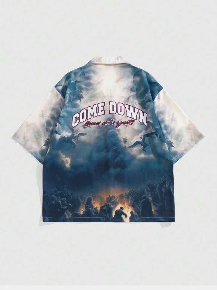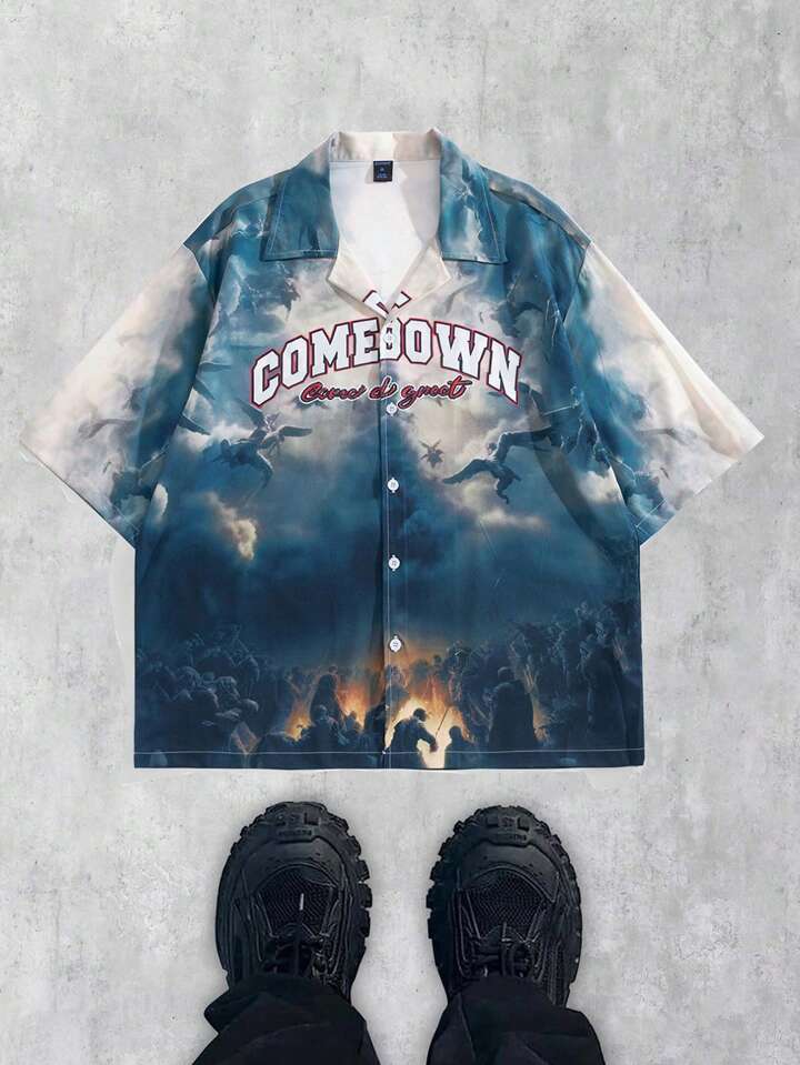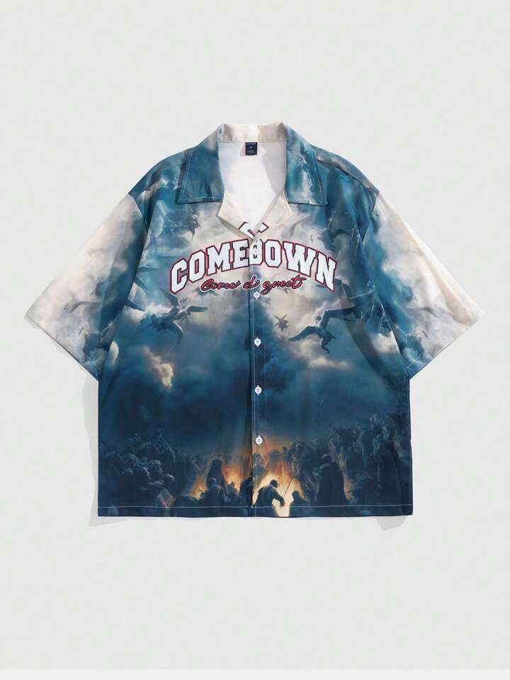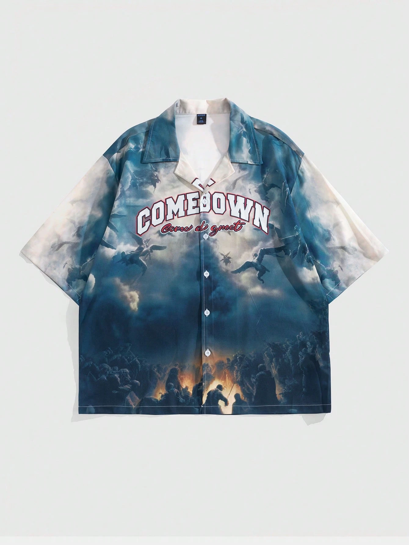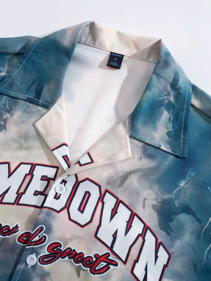 Street Life Camicia casual da uomo a maniche corte, monopetto, con stampa a lettera