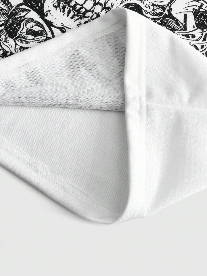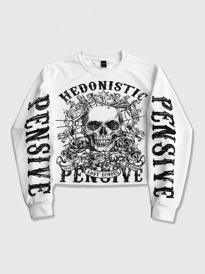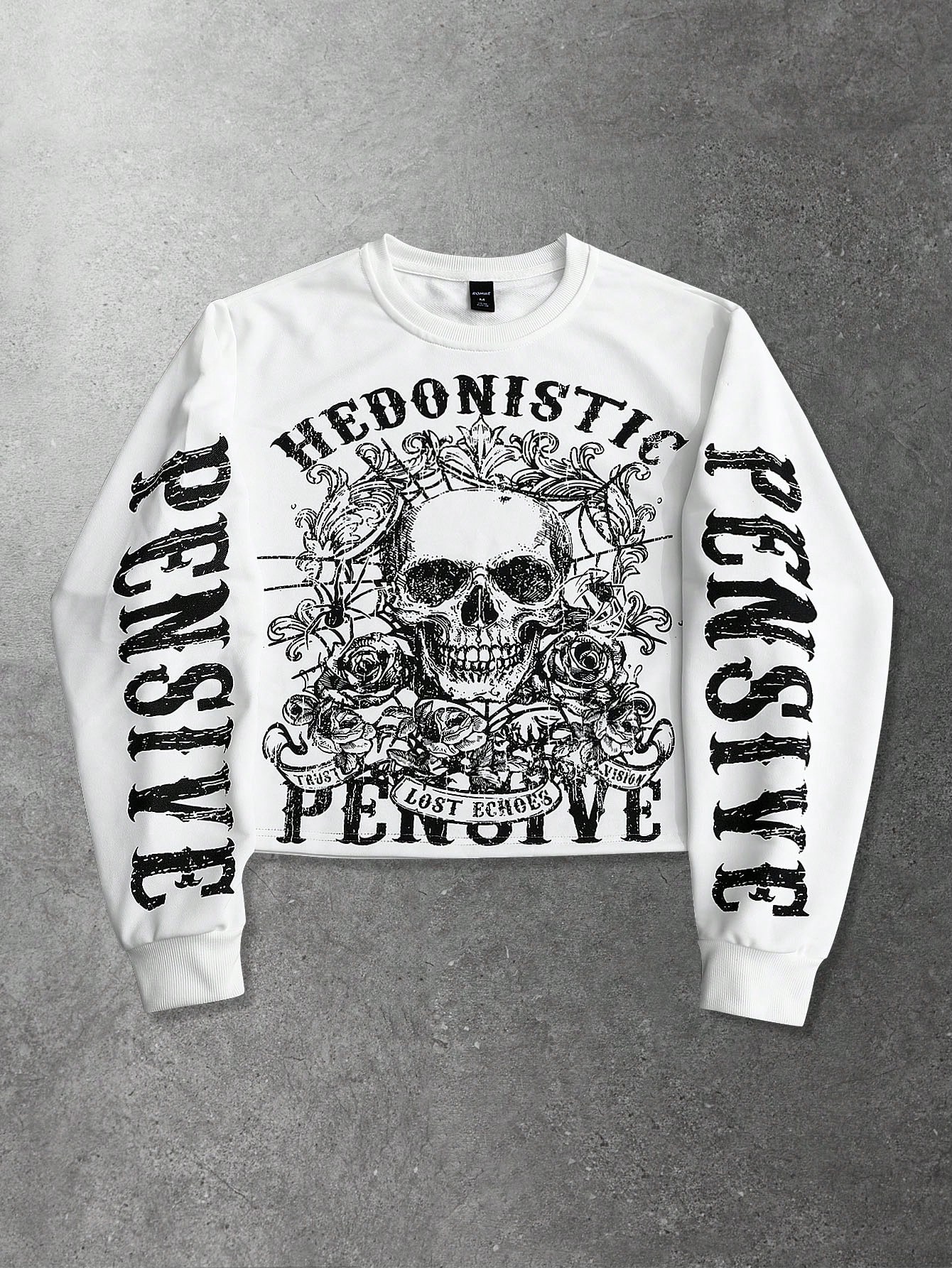 Street Life Felpa girocollo casual da uomo con grafica di lettere e teschio, manica lunga