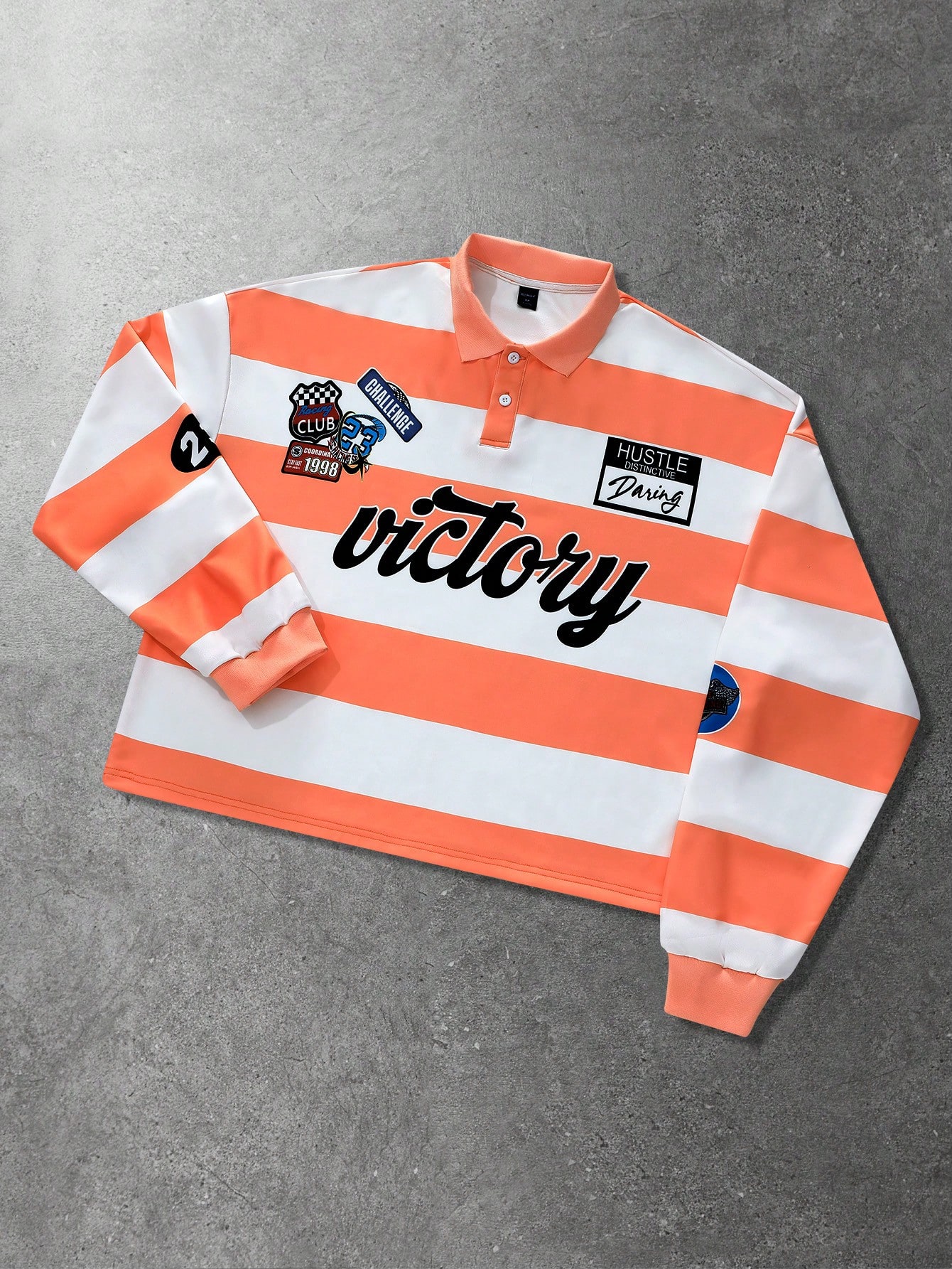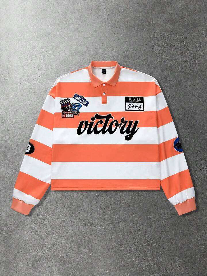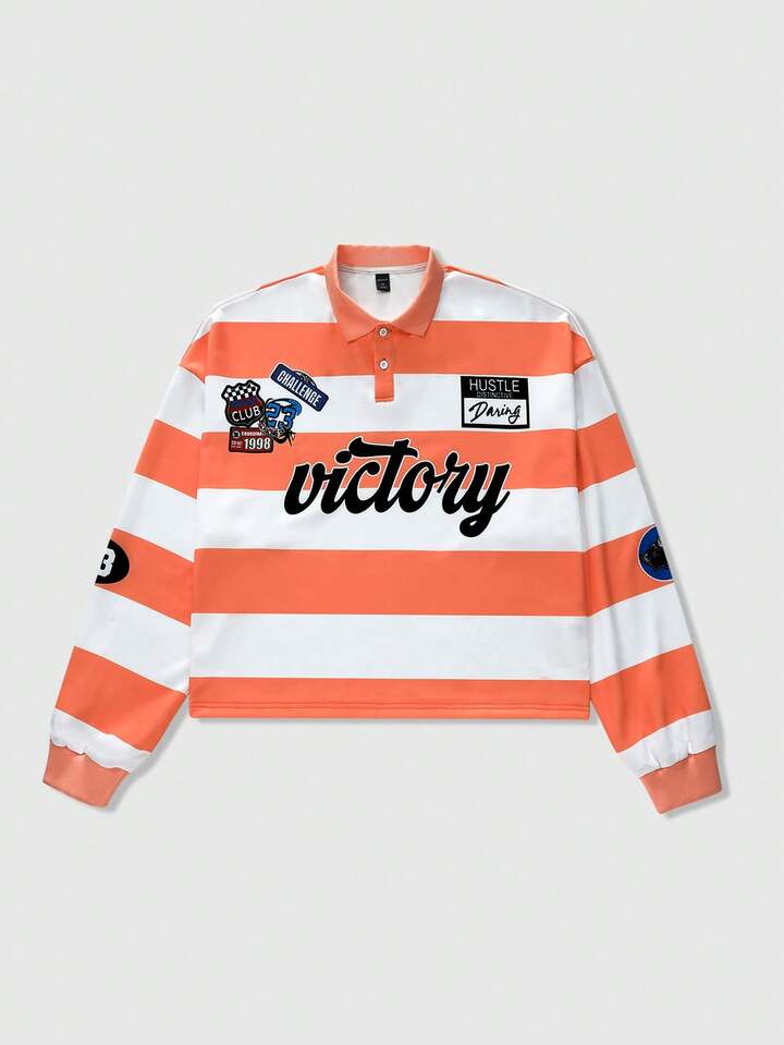 Street Life Felpa casual da uomo con colletto polo, maniche lunghe, con stampa di lettere e righe