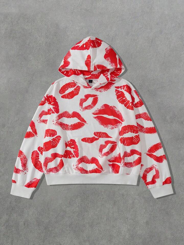 Street Life Felpa con cappuccio da uomo con stampa a labbra, vestibilità morbida, per l'autunno