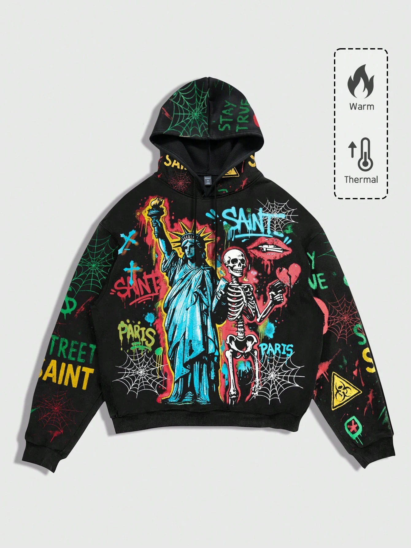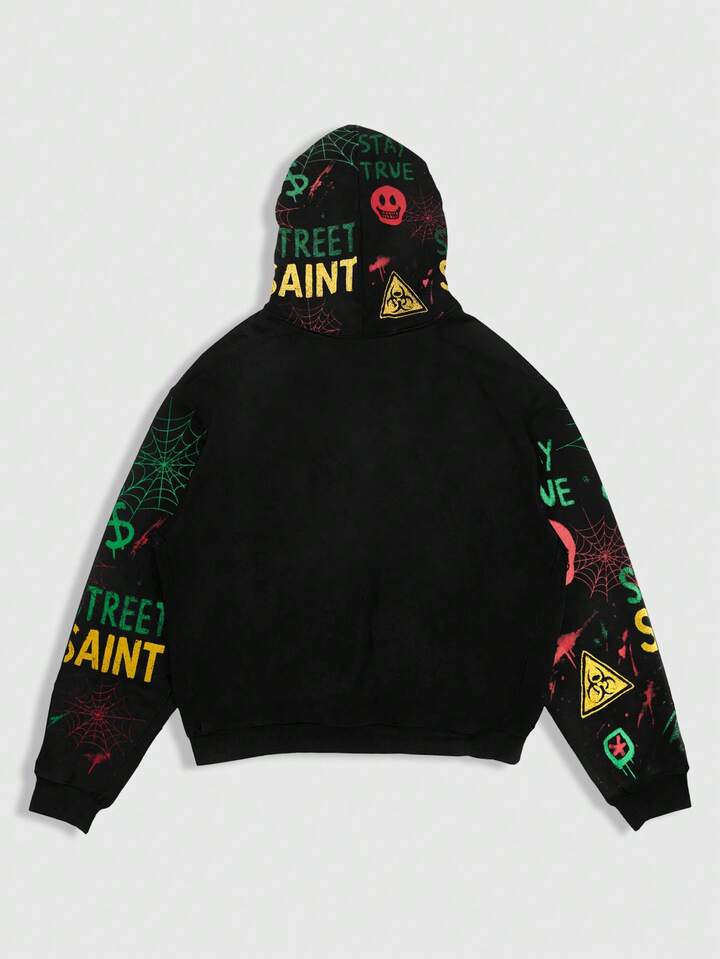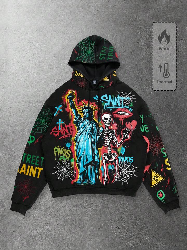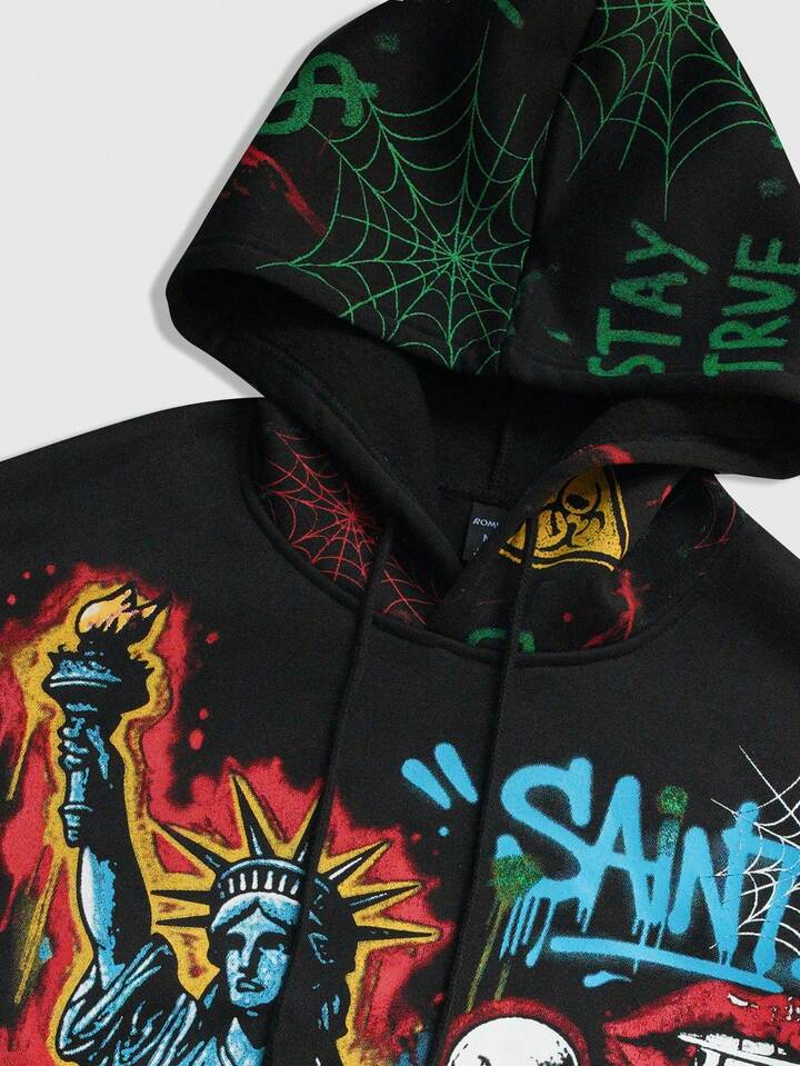Street Life Felpa con cappuccio, maniche lunghe, con laccetti, grafica creativa con croce e teschio, per uomo