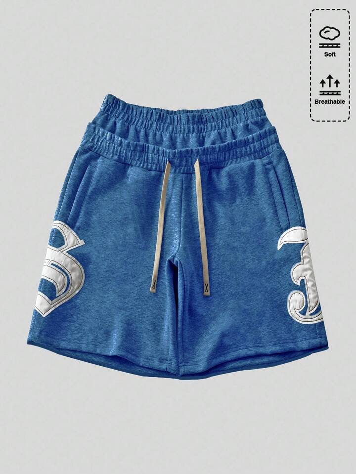 Street Life Pantaloncini casual larghi da uomo con toppe ricamate, tasche e vita elastica