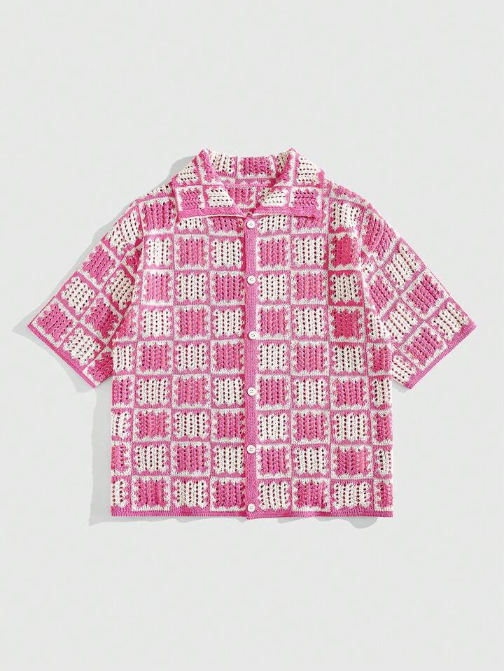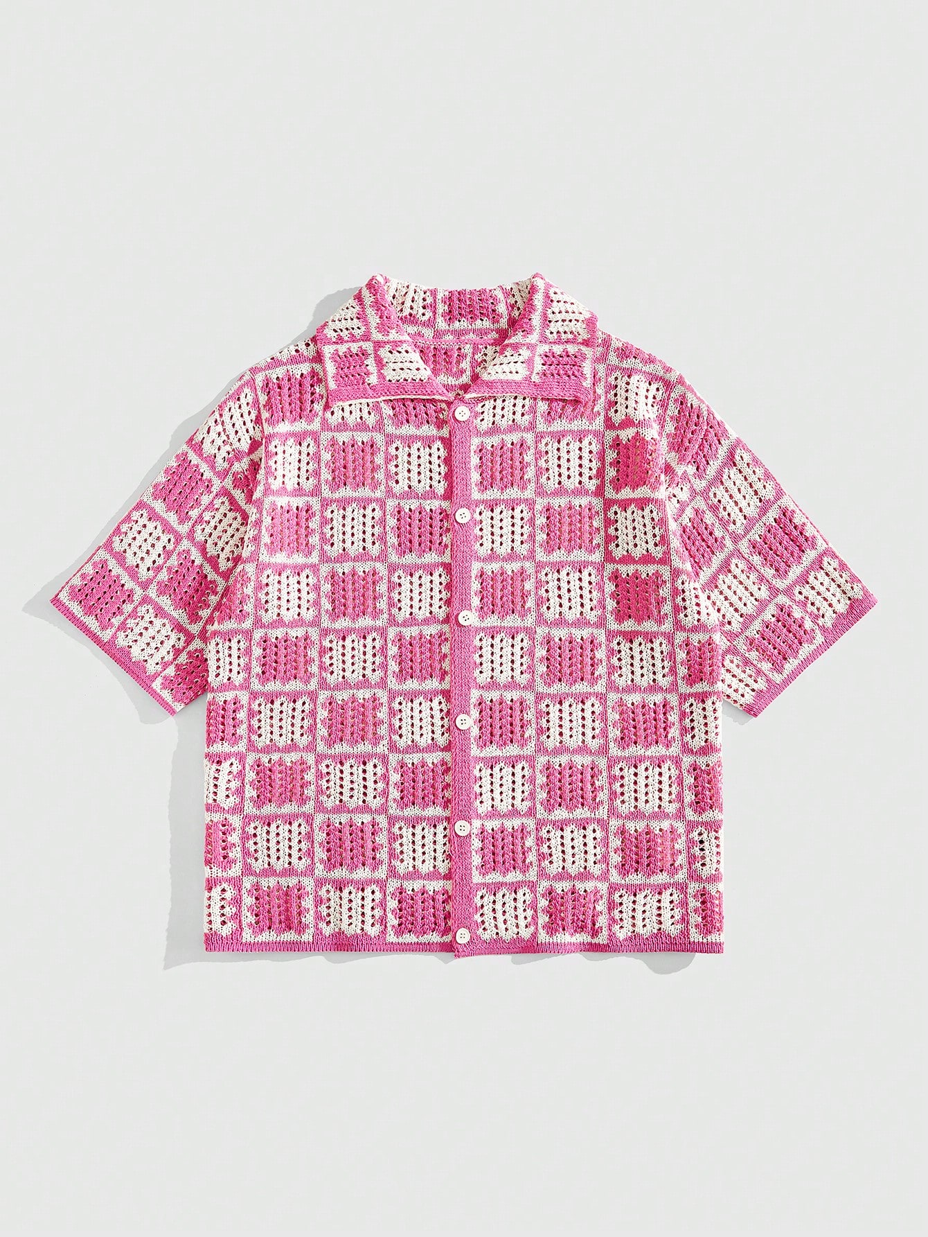 Street Life Camicia morbida da uomo a spalle larghe, maglia lavorata a maglia traforata, adatta per vacanze e tempo libero
