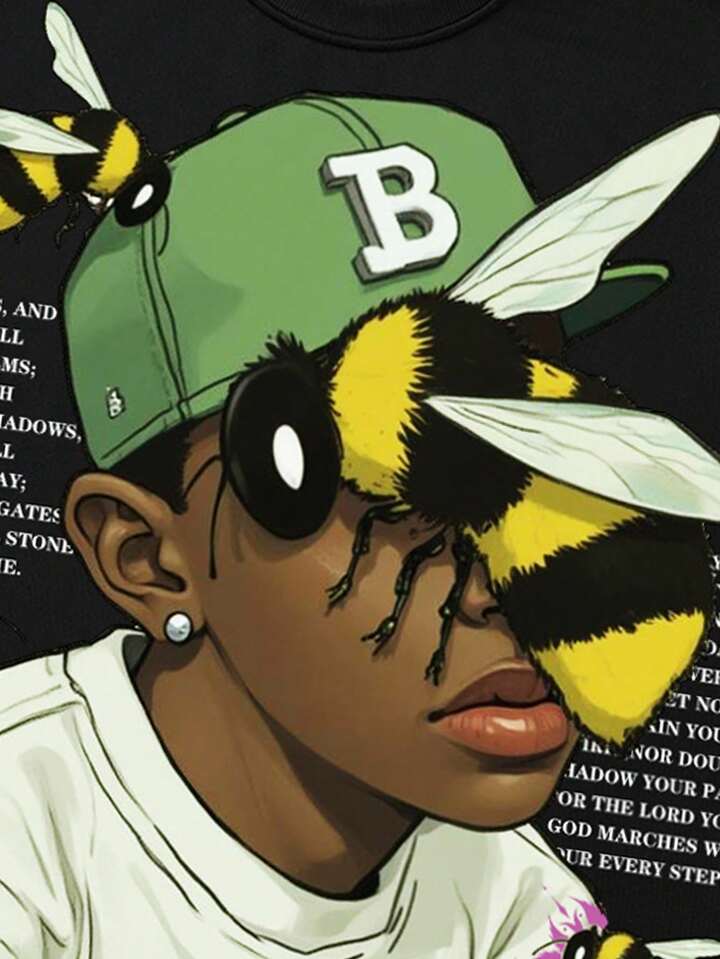 Street Life Maglietta a maniche corte con stampa, stile oversize e spalle cadenti, da uomo
