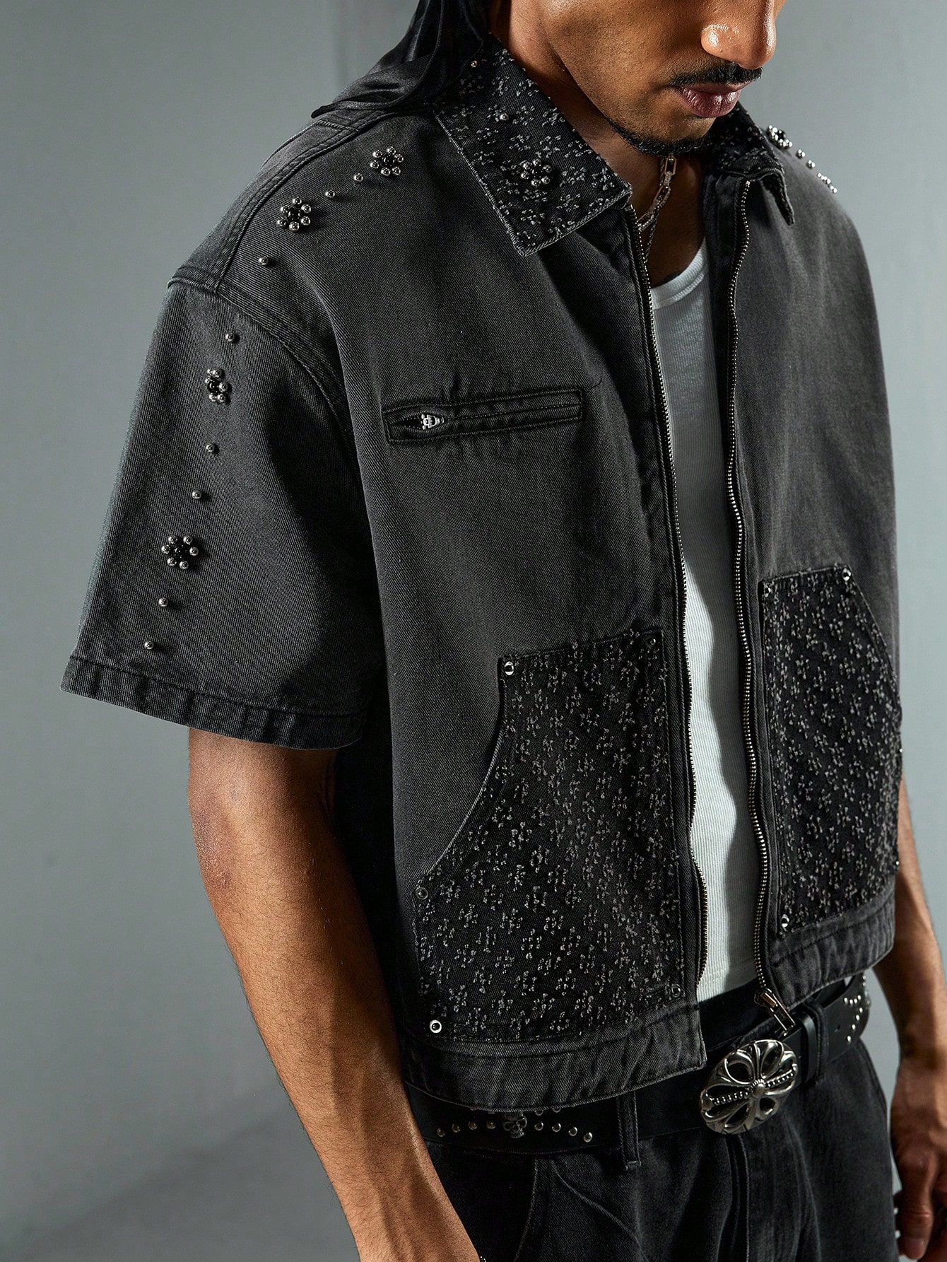 Street Life Giacca di jeans oversize da uomo con decorazioni in perle