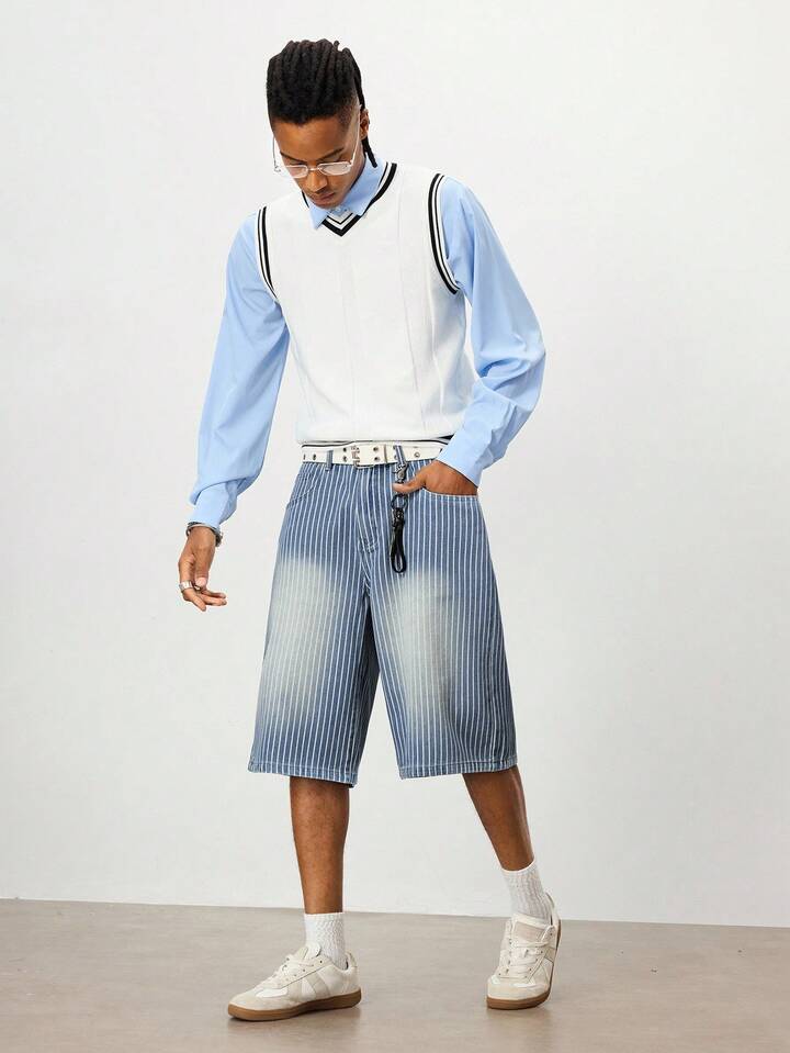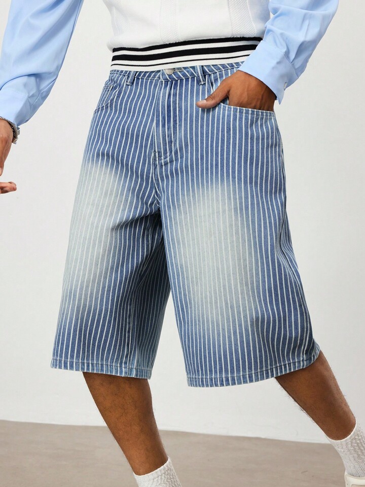 Street Life Jeans casual a 7/8 con tasche, vestibilità ampia, a righe, estivi, da uomo