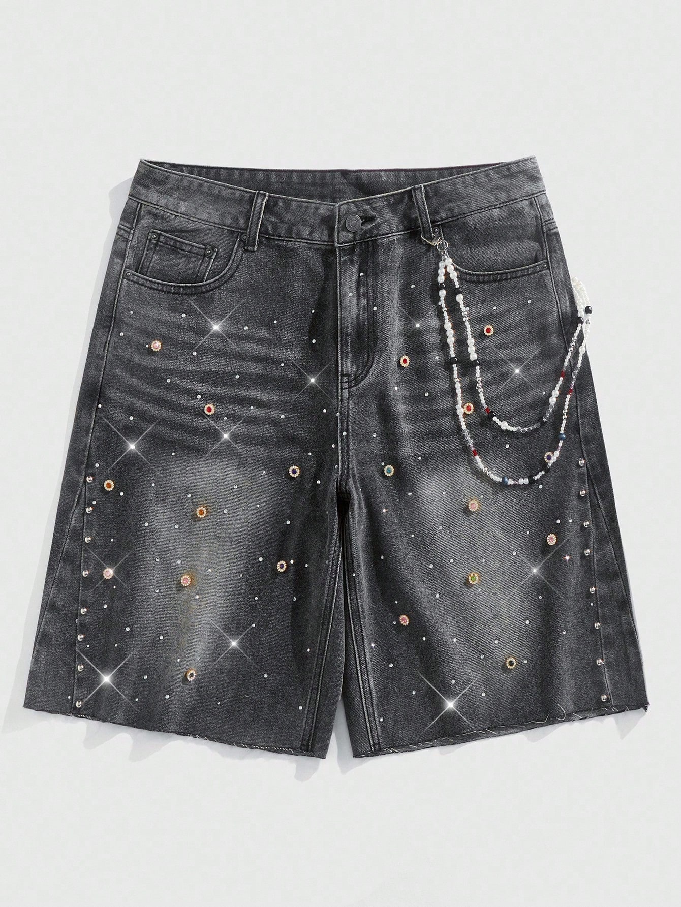 Street Life Pantaloncini di jeans larghi da uomo con decorazioni in strass