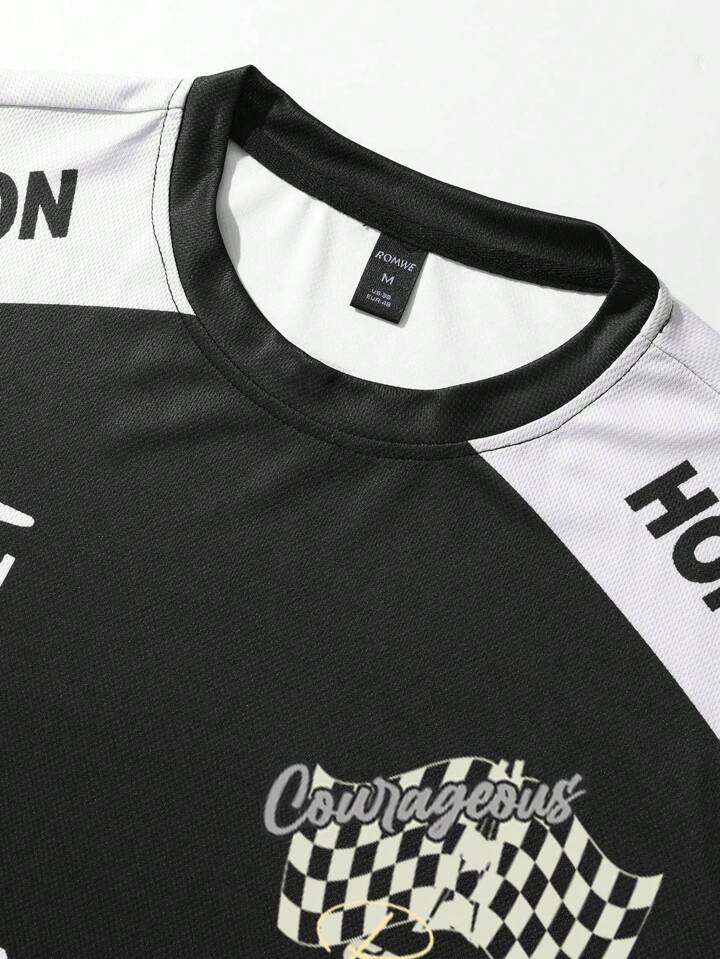 Street Life Maglietta a maniche corte con vestibilità ampia in jersey con stampa racing adatta per l'estate e la scuola