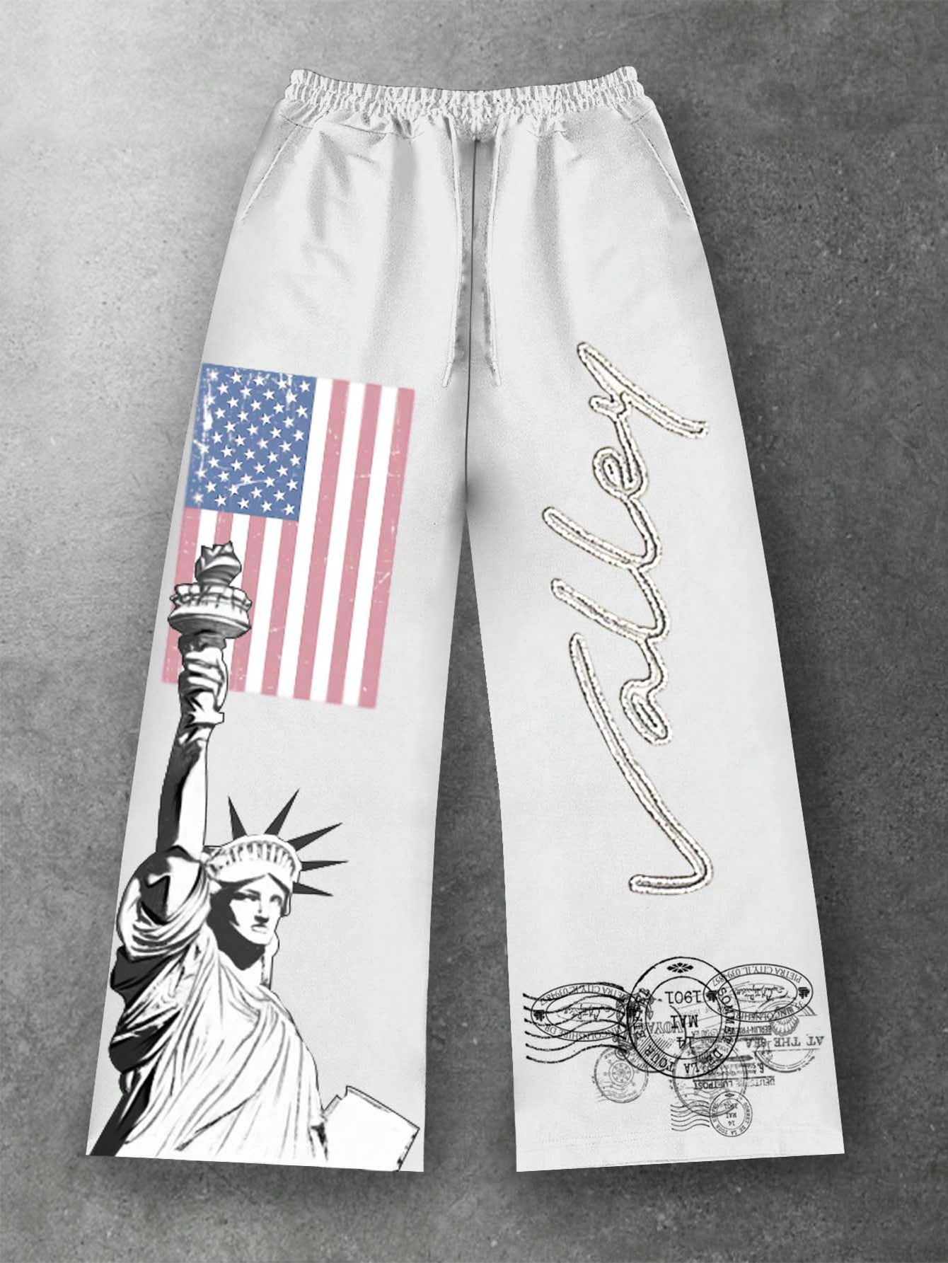 Street Life Pantaloni della tuta con vestibilità ampia da uomo con stampa digitale della Statua della Libertà