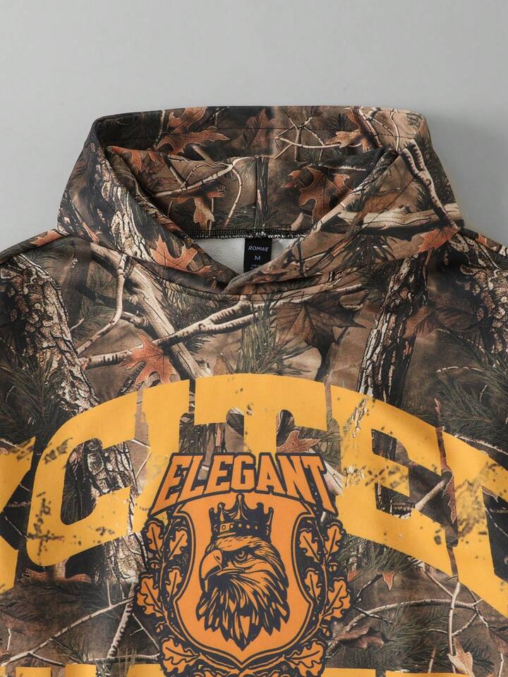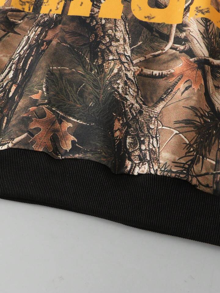 Street Life Felpa con cappuccio corta oversize da uomo in camouflage a motivo di rami d'albero, streetwear