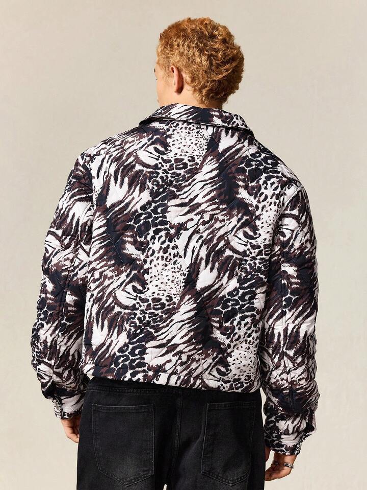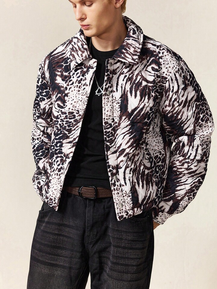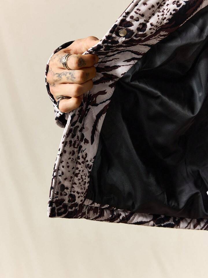 Street Life Giacca casual invernale da uomo ampia con stampa leopardata a maniche lunghe