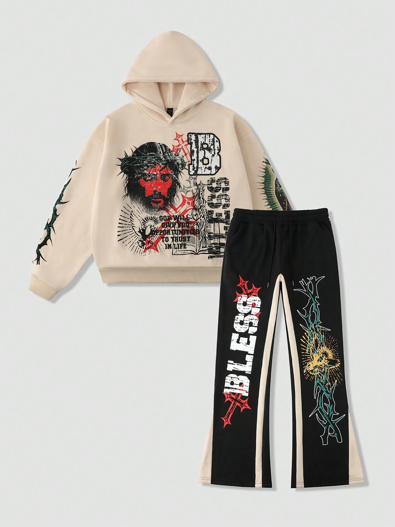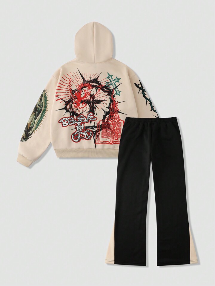 Street Life Set di felpe corte e larghe da uomo con stampe, stile street