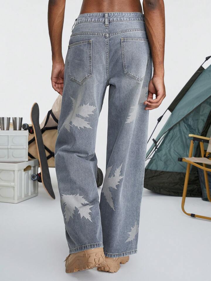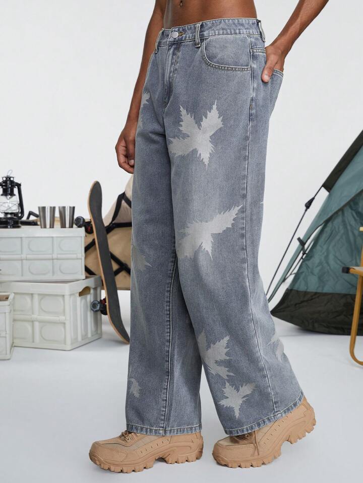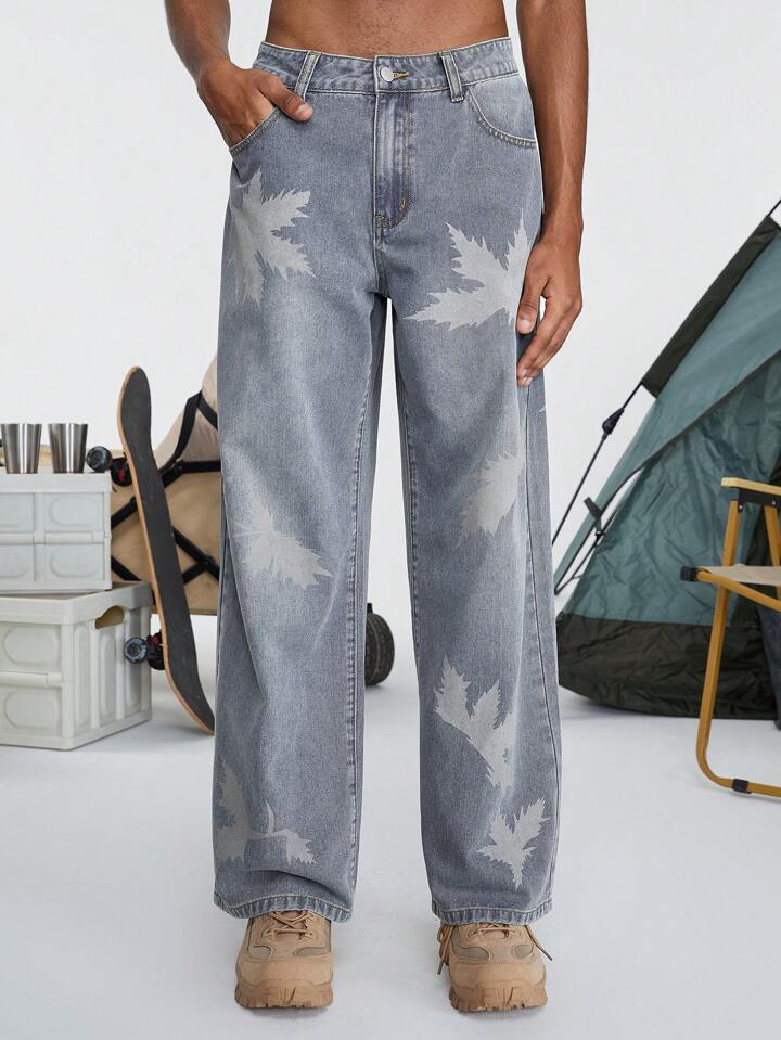 Street Life Jeans Stampati Foglie Di Acero Per Uomo