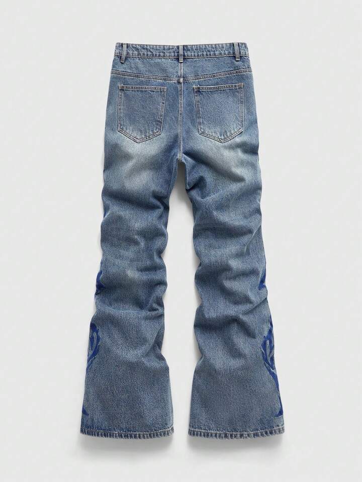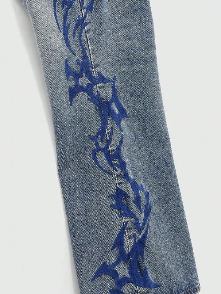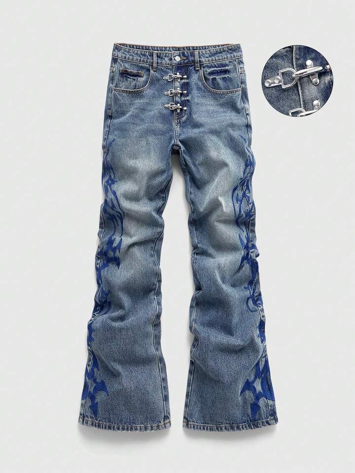 Street Life Jeans a zampa con bottoni in metallo e ricamo a strati per uomo