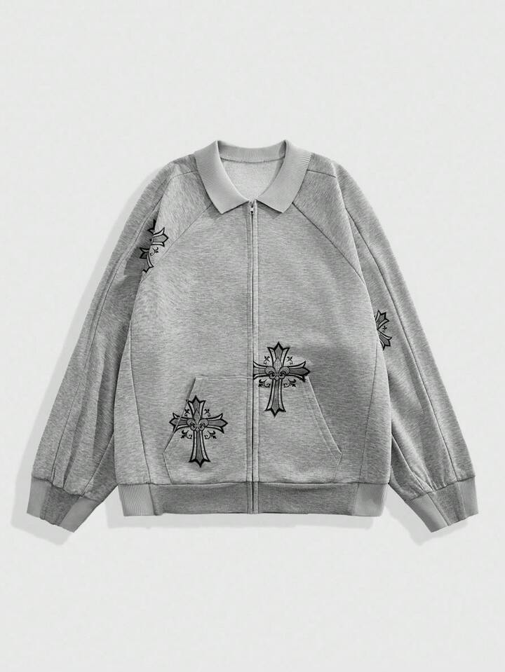 Street Life Felpa con chiusura lampo e maniche lunghe, con stampa minimalista a croce, per l'autunno, da uomo